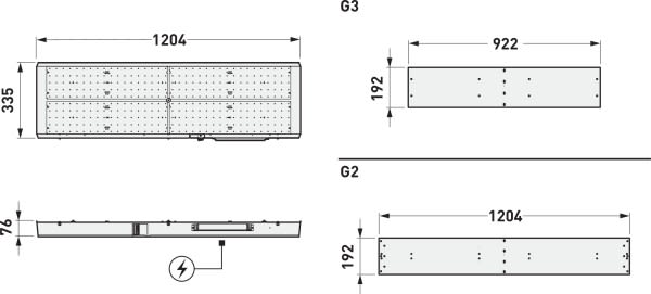 Kit LED pour la rénovation des luminaires existants restant dans ou sur le plafond. Kit LED pour la série Fidesca-PM G3... . La lampada tradizionale e l'alimentatore precedente vengono rimossi e sostituiti dal kit LED. Le corps du luminaire reste sur le lieu d'installation, l'ancien système optique (diffuseur) fermant la pièce est toujours utilisé . Le flux lumineux du système du luminaire existant rénové dépend des effets du vieillissement du système optique installé ainsi que du degré d'encrassement. Le commutateur DIP permet de régler les flux lumineux du système de manière analogue aux types de lampes utilisés dans l'ancien système. Flux lumineux du luminaire réglable sur 3 niveaux (Multilumen). Flux lumineux du luminaire 7500 lm - 10500 lm, puissance raccordée 61 W - 85 W, rendement lumineux maximale du luminaire 125 lm/W. Teinte de lumière blanc neutre, température de couleur (CCT) 4000 K, indice général de rendu des couleurs (IRC) Ra > 90. Tolérance de localisation chromatique (initialement MacAdam) ≤ 3 SDCM. Durée de vie assignée moyenne L70 (tq 25 °C) = 100.000 h., Durée de vie assignée moyenne L80 (tq 25 °C) = 100.000 h. La source lumineuse est remplaçable conformément aux exigences d'écoconception (Règlement (UE) 2019/2020). Corps de luminaire en aluminium, Revêtement poudre. Couleur blanc (similaire à RAL 9016). Dimensions (L x l x H) : 1204 mm x 343 mm x 70 mm. Classe électrique (EN 61140) : I, indice de protection (norme EN 60529) : IP20, degré de résistance aux chocs selon la norme CEI 62262 : , température d’essai au fil incandescent selon la norme CEI 60695-2-11 : 850 °C. Température ambiante admissible (ta): 25 °C Poids: 5.4 kg. Avec appareillage électronique, à gradation numérique (DALI). Appareillage conf. au standard DALI 2 (EN 62386). Possibilité de commutation et de gradation du luminaire au moyen de la fonction bouton-poussoir via les bornes de commande DALI (TouchDim). L'appareillage est remplaçable conformément aux exigences d'écoconception (Règlement (UE) 2019/2020). Ce luminaire qui est prêt au monitoring (MOR) fournit des données d’exploitation permettant une surveillance ou une maintenance prédictive, il est donc compatible avec les services de TRILUX Monitoring Services. Le produit répond aux exigences essentielles des directives européennes applicables et de la loi sur la sécurité des produits et porte le marquage CE.