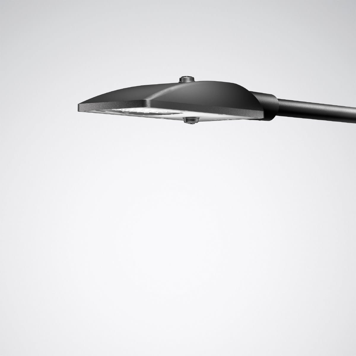 Luminaire extérieur pour mât droit, polyvalent, au design réduit international et de format plat. Avec équipement SLR (Smart Lighting Ready). Socle Zhaga sur la tête du luminaire en haut et en bas. Le luminaire conçu pour la norme D4i est certifié Zhaga/D4i. L'inclinaison de la tête du luminaire est réglable. Angle d’inclinaison pour montage sur crosse, réglable o°, -5°, -10°, -15°. Angle d’inclinaison pour montage droit 0°, 5°, 10°, 15°. En version MLT (Technologie Multi Lens), composé de systèmes de lentilles hautement efficaces, résistants aux UV et aux températures extrêmes, en montage quadruple. À répartition semi-extensive asymétrique des intensités lumineuses. Pour l’éclairage de parkings, de surfaces de stockage et similaire. Flux lumineux du luminaire et couleur de lumière fixes, avec maintien du flux lumineux en fin de vie (CLO). Flux lumineux du luminaire 4200 lm, puissance raccordée 33 W, rendement lumineux maximale du luminaire 127 lm/W. Teinte de lumière blanc chaud, température de couleur (CCT) 3000 K, Disponible sur demande également en version Tunable White (2200 K – 4000 K). indice général de rendu des couleurs (IRC) Ra > 70. Tolérance de localisation chromatique (initialement MacAdam) ≤ 5 SDCM. Autres couleurs de lumière LED disponibles sur demande. Durée de vie assignée moyenne LCLO (tq 25 °C) = 100.000 h. La source lumineuse est remplaçable conformément aux exigences d'écoconception (Règlement (UE) 2019/2020). Corps de luminaire en aluminium moulé sous pression. Surface à revêtement anthracite (similaire à DB 703). Boîtier de luminaire très résistant aux intempéries, revêtement poudré. Revêtement convenant à un climat maritime, sur demande. Avec lentille de recouvrement en PMMA, imprimée. Le client peut opter pour une impression personnalisée de la vitre de fermeture. Sur demande : plaque visible derrière la vitre de fermeture, protégée contre les intempéries. Mât disponible sur demande. Classe électrique (EN 61140) : II, indice de protection (norme EN 60529) : IP66, degré de résistance aux chocs selon la norme CEI 62262 : IK09. Température ambiante admissible (ta): 25 °C Surface exposée au vent Fw 0.100 m2. Poids: 4.2 kg. Le raccordement du luminaire s’effectue sans ouvrir son corps grâce au câble d’alimentation sortant vers l’extérieur. Longueur du câble d’alimentation: 8,0 m. Câble d’alimentation résistant aux UV pour le montage en extérieur sur des traverses. Avec driver. L'appareillage est remplaçable conformément aux exigences d'écoconception (Règlement (UE) 2019/2020). Résistance aux pics de tension Mode différentiel / mode commun : 6 kV / 10 kV. Le produit répond aux exigences essentielles des directives européennes applicables et de la loi sur la sécurité des produits et porte le marquage CE. Le luminaire est en outre certifié ENEC par un organisme de contrôle indépendant.