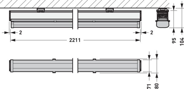 Platine-appareillage pour le système de ligne continue 78 E-Line Pro. En association avec des profils-supports 078... pour des applications individuelles ou de ligne continue, positionnement au choix. La platine-appareillage peut être positionnée au choix dans la ligne continue. Fixation au profil-support par fermetures encliquetables en acier inoxydable à actionner sans outil. Doté d’un détrompeur (mécanique) contre les erreurs de montage. Le montage dans les règles de la platine-appareillage et du profil-support est confirmé par un enclenchement audible. Le système optique se compose d’un recouvrement en PMMA prismatique, résistant aux chocs et au degré de transmission élevé. À répartition symétrique limitée et extensive des intensités lumineuses. Angle d’ouverture: C0 = 93°, C90 = 79°, Angle de faisceau principal C0 = +/- 28°. Hauteur d’installation recommandée : 3 - 6 m. Taux d'éblouissement selon classification UGR (EN 12464-1) < 19. À légère composante indirecte pour un éclaircissement des surfaces (8%). Flux lumineux du luminaire et couleur de la lumière fixes. Avec trois modules LED (3 x 96 LED). Émission de lumière sans rayonnements infrarouges (IR) et ultraviolets (UV). Flux lumineux du luminaire 8400 lm, puissance raccordée 51 W, rendement lumineux maximale du luminaire 165 lm/W. Teinte de lumière blanc neutre, température de couleur (CCT) 4000 K, indice général de rendu des couleurs (IRC) Ra > 80. Tolérance de localisation chromatique (initialement MacAdam) ≤ 3 SDCM. La source lumineuse est remplaçable conformément aux exigences d'écoconception (Règlement (UE) 2019/2020). Platine-appareillage en tôle d’acier. Surface à revêtement blanc (similaire à RAL 9016). Longueur de la platine-appareillage 2211 mm. Classe électrique (EN 61140) : I, indice de protection (norme EN 60529) : IP50, degré de résistance aux chocs selon la norme CEI 62262 : IK06, température d’essai au fil incandescent selon la norme CEI 60695-2-11 : 650 °C. Indice de protection du compartiment de la lampe IP50 (anti-insectes). Température ambiante admissible (ta): -25 °C à 35 °C. Poids: 3.0 kg. Connexion automatique, sans outil, avec la filerie d’alimentation au moyen d'une prise. La prise facilite un montage sûr et rapide, elle est codée au niveau mécanique et par couleur et indique le sens de montage par une flèche.. La sélection des phases s'effectue sans outil grâce à des contacts coulissants de type push. La prise peut être tournée pour orienter les répartitions lumineuses asymétriques. Avec appareillage électronique, à gradation numérique (DALI). Appareillage conf. au standard DALI 2 (EN 62386). Possibilité de commutation et de gradation du luminaire au moyen de la fonction bouton-poussoir via les bornes de commande DALI (TouchDim). L'appareillage est remplaçable conformément aux exigences d'écoconception (Règlement (UE) 2019/2020). Ce luminaire qui est prêt au monitoring (MOR) fournit des données d’exploitation permettant une surveillance ou une maintenance prédictive, il est donc compatible avec les services de TRILUX Monitoring Services. Le luminaire est en outre certifié ENEC par un organisme de contrôle indépendant.