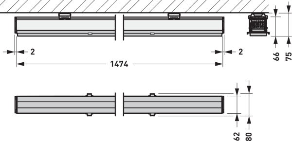 Platine-appareillage pour le système de ligne continue 78 E-Line Pro. En association avec des profils-supports 078... pour des applications individuelles ou de ligne continue, positionnement au choix. La platine-appareillage peut être positionnée au choix dans la ligne continue. Fixation au profil-support par fermetures encliquetables en acier inoxydable à actionner sans outil. Doté d’un détrompeur (mécanique) contre les erreurs de montage. Le montage dans les règles de la platine-appareillage et du profil-support est confirmé par un enclenchement audible. Le système optique étant composé d’une optique à lentilles en PMMA, dotée de trois zones harmonisées, à bonne efficacité photométrique, il assure une répartition de la lumière et un éclairage tous deux homogènes. À répartition symétrique extensive des intensités lumineuses. Angle d’ouverture C0: 84°, Angle d’ouverture C90: 86°, Angle de faisceau principal: +/- 28°. Hauteur d’installation recommandée : 3 - 6 m. Flux lumineux du luminaire et couleur de la lumière fixes. Avec deux modules LED (2 x 96 LED). Émission de lumière sans rayonnements infrarouges (IR) et ultraviolets (UV). Flux lumineux du luminaire 12600 lm, puissance raccordée 79 W, rendement lumineux maximale du luminaire 159 lm/W. Teinte de lumière blanc neutre, température de couleur (CCT) 4000 K, indice général de rendu des couleurs (IRC) Ra > 80. Tolérance de localisation chromatique (initialement MacAdam) ≤ 3 SDCM. La source lumineuse est remplaçable conformément aux exigences d'écoconception (Règlement (UE) 2019/2020). Platine-appareillage en tôle d’acier. Surface à revêtement blanc (similaire à RAL 9016). Longueur de la platine-appareillage 1474 mm. Classe électrique (EN 61140) : I, indice de protection (norme EN 60529) : IP50, degré de résistance aux chocs selon la norme CEI 62262 : IK03, température d’essai au fil incandescent selon la norme CEI 60695-2-11 : 650 °C. Température ambiante admissible (ta): -25 °C à 25 °C. Poids: 1.8 kg. Connexion automatique, sans outil, avec la filerie d’alimentation au moyen d'une prise. La prise facilite un montage sûr et rapide, elle est codée au niveau mécanique et par couleur et indique le sens de montage par une flèche.. La sélection des phases s'effectue sans outil grâce à des contacts coulissants de type push. La prise peut être tournée pour orienter les répartitions lumineuses asymétriques. Avec appareillage électronique, à gradation numérique (DALI). Appareillage conf. au standard DALI 2 (EN 62386). Possibilité de commutation et de gradation du luminaire au moyen de la fonction bouton-poussoir via les bornes de commande DALI (TouchDim). L'appareillage est remplaçable conformément aux exigences d'écoconception (Règlement (UE) 2019/2020). Ce luminaire qui est prêt au monitoring (MOR) fournit des données d’exploitation permettant une surveillance ou une maintenance prédictive, il est donc compatible avec les services de TRILUX Monitoring Services. Le luminaire est en outre certifié ENEC par un organisme de contrôle indépendant.