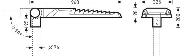 Luminaire à LED pour candélabre droit et pour crosse. Format IQ 90 (960 x 325 mm). Avec réduction de la puissance autonome via la phase de commande. En version MLT (Technologie Multi Lens), composé de systèmes de lentilles hautement efficaces, résistants aux UV et aux températures extrêmes, en montage quadruple. À répartition asymétrique extensive des intensités lumineuses. Pour l’éclairage de rues selon les classes d’éclairage M5 et M6, au rapport entre largeur de rue et hauteur utile de 0,4 0,8. D’autres faisceaux sont disponibles pour une adaptation flexible à des tâches d’éclairage personnalisées client. Le montage ultérieur d'un blindage arrière / latéral est possible en tant qu'accessoire à commander séparément. Flux lumineux du luminaire et couleur de lumière fixes, avec maintien du flux lumineux en fin de vie (CLO). 24 Modules LED. Flux lumineux du luminaire 18000 lm, puissance raccordée 128 W, rendement lumineux maximale du luminaire 141 lm/W. Teinte de lumière blanc chaud, température de couleur (CCT) 3000 K, indice général de rendu des couleurs (IRC) Ra > 70. Tolérance de localisation chromatique (initialement MacAdam) ≤ 5 SDCM. Autres couleurs de lumière LED disponibles sur demande. Durée de vie assignée moyenne LCLO(tq 35 °C) = 100.000 h. La source lumineuse est remplaçable conformément aux exigences d'écoconception (Règlement (UE) 2019/2020). Corps de luminaire en aluminium moulé sous pression. Aux contours latéraux à effet fermé. Corps du luminaire (couleur primaire) et point de rotation (couleur supplémentaire) de couleur contrastée. Couleur primaire anthracite (DB 703), couleur supplémentaire gris argenté (RAL 9006). À effet métallique, haute résistance aux intempéries Revêtement convenant à un climat maritime, sur demande. Angle de rotation contrastant en gris argent, analogue à RAL 9006, haute résistance aux intempéries, revêtement poudré. Verre de fermeture en verre de sécurité simple, traité thermiquement (ESG-H), degré de transmission > 98 %, enchâssé dans le cadre moulé sous pression, rabattable et décrochable sans outil. Classe électrique (EN 61140) : II, indice de protection (norme EN 60529) : IP66, degré de résistance aux chocs selon la norme CEI 62262 : IK08. Mât disponible sur demande. Surface exposée au vent Fw 0.100 m2. Poids: 21.6 kg. Câble d’alimentation déjà raccordé. Longueur du câble d’alimentation 12 m. Avec driver. L'appareillage est remplaçable conformément aux exigences d'écoconception (Règlement (UE) 2019/2020). Résistance aux pics de tension Mode différentiel / mode commun : 6 kV / 10 kV. Le produit répond aux exigences essentielles des directives européennes applicables et de la loi sur la sécurité des produits et porte le marquage CE. Le luminaire est en outre certifié ENEC par un organisme de contrôle indépendant.