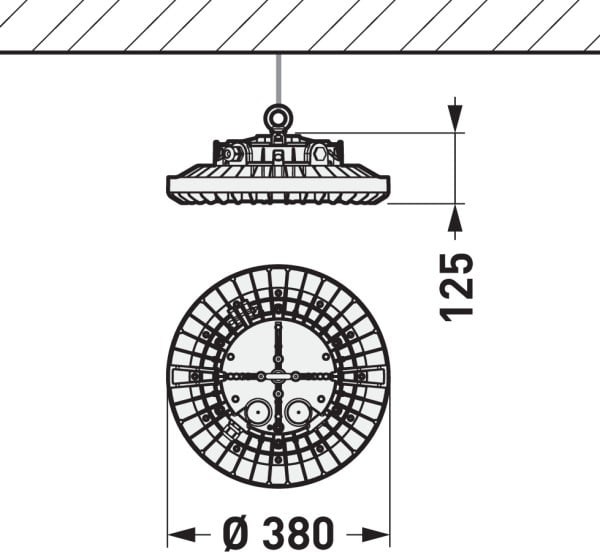 Hublot industriel robuste pour les zones à risque d’explosion. Convient pour une utilisation dans des zones qui, en fonctionnement normal, sont occasionnellement exposées à un risque d'explosion dû à des nuages de poussière inflammable (zone 21 /22). Convient pour une utilisation dans des zones qui, en fonctionnement normal, sont occasionnellement exposées à un risque d'explosion dû aux gaz, aux vapeurs ou aux brouillards (zone 1 / 2 ). Un œillet de fixation est inclus dans la livraison de la version suspendue. Possibilité d’un montage au mur, au plafond, sur un mât ou un tube au moyen d’accessoires à commander séparément. Avec une répartition lambertienne des intensités lumineuses. Flux lumineux du luminaire et couleur de la lumière fixes. Flux lumineux du luminaire 22400 lm, puissance raccordée 140 W, rendement lumineux maximale du luminaire 160 lm/W. Teinte de lumière , température de couleur (CCT) , indice général de rendu des couleurs (IRC) Ra > 80. Tolérance de localisation chromatique (initialement MacAdam) ≤ 3 SDCM. Durée de vie assignée moyenne L80 (tq 25 °C) = 70.000 h. Corps du luminaire en alliage d’aluminium sans cuivre avec une surface résistante aux intempéries et à la corrosion. Surface à revêtement en jaune de sécurité (similaire à RAL 1003). Plaque de recouvrement en verre trempé. Diamètre du luminaire 380 mm, Hauteur du luminaire 125 mm. Classe électrique (EN 61140) : I, indice de protection (norme EN 60529) : IP6667, degré de résistance aux chocs selon la norme CEI 62262 : IK10. Température ambiante admissible (ta): -32 °C à 50 °C. Poids: 6.5 kg. Un raccord à visser (PA) est inclus dans la livraison. Avec appareillage électronique, commutable. Le produit répond aux exigences essentielles des directives européennes applicables et de la loi sur la sécurité des produits et porte le marquage CE.