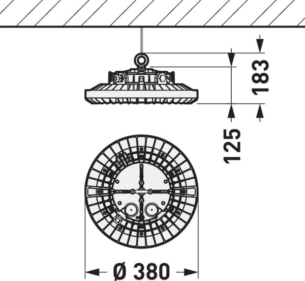 Hublot industriel robuste pour les zones à risque d’explosion. Convient pour une utilisation dans des zones qui, en fonctionnement normal, sont rarement exposées à un risque d'explosion par des nuages de poussière inflammables et seulement pendant une courte durée (zone 22). Convient pour une utilisation dans des zones qui, en fonctionnement normal, sont rarement exposées à un risque d'explosion par des gaz, des vapeurs ou des brouillards et seulement pendant une courte durée (zone 2). Un œillet de fixation est inclus dans la livraison de la version suspendue. Possibilité d’un montage au mur, au plafond, sur un mât ou un tube au moyen d’accessoires à commander séparément. Avec une répartition lambertienne des intensités lumineuses. Flux lumineux du luminaire et couleur de la lumière fixes. Flux lumineux du luminaire 24800 lm, puissance raccordée 160 W, rendement lumineux maximale du luminaire 155 lm/W. Teinte de lumière , température de couleur (CCT) , indice général de rendu des couleurs (IRC) Ra > 80. Tolérance de localisation chromatique (initialement MacAdam) ≤ 3 SDCM. Durée de vie assignée moyenne L80 (tq 25 °C) = 70.000 h. Corps du luminaire en alliage d’aluminium sans cuivre avec une surface résistante aux intempéries et à la corrosion. Surface à revêtement en jaune de sécurité (similaire à RAL 1003). Plaque de recouvrement en verre trempé. Diamètre du luminaire 380 mm, Hauteur du luminaire 125 mm. Classe électrique (EN 61140) : I, indice de protection (norme EN 60529) : IP6667, degré de résistance aux chocs selon la norme CEI 62262 : IK10. Température ambiante admissible (ta): -32 °C à 55 °C. Poids: 7.2 kg. Un raccord à visser (PA) est inclus dans la livraison. Avec appareillage électronique, commutable. Le produit répond aux exigences essentielles des directives européennes applicables et de la loi sur la sécurité des produits et porte le marquage CE.