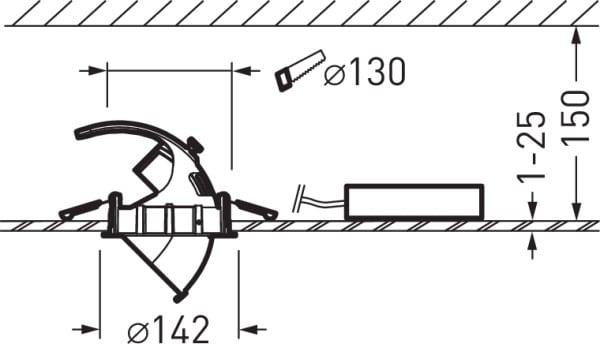 faible éblouissement selon EN 12464-1 (UGR < 19):