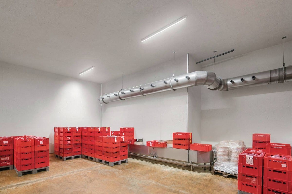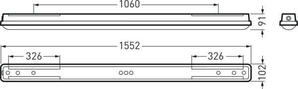 Plafonnier à LED pour locaux humides IP66 avec corps du luminaire en PC et diffuseur en PC. Avec équipement esclave LiveLink SwarmSens. Convient pour une utilisation dans les entreprises certifiées HACCP, IFS et/ou BRC Global Standard Food. Pour montage au mur et au plafond ainsi que pour montage suspendu. Diffuseur en PC avec structure de prismes situé à l'intérieur. À répartition symétrique extensive des intensités lumineuses. Taux d'éblouissement selon classification UGR (EN 12464-1) < 25. Flux lumineux du luminaire et couleur de la lumière fixes. Flux lumineux du luminaire 3900 lm, puissance raccordée 28 W, rendement lumineux maximale du luminaire 139 lm/W. Teinte de lumière blanc neutre, température de couleur (CCT) 4000 K, indice général de rendu des couleurs (IRC) Ra > 80. Tolérance de localisation chromatique (initialement MacAdam) ≤ 3 SDCM. La source lumineuse est remplaçable conformément aux exigences d'écoconception (Règlement (UE) 2019/2020). Corps du luminaire en PC recyclable et résistant aux UV. Corps de luminaire de couleur gris (RAL 7035). Technique de fermeture sans clips simplifiant le montage conforme à l’indice de protection, de la vasque du diffuseur et du corps de luminaire après le raccordement. Dimensions (L x l): 1552 mm x 102 mm, hauteur du luminaire 91 mm. Température ambiante admissible (ta): -20 °C à +35 °C. Classe électrique (EN 61140) : I, indice de protection (norme EN 60529) : IP66, degré de résistance aux chocs selon la norme CEI 62262 : IK08, température d’essai au fil incandescent selon la norme CEI 60695-2-11 : 850 °C. Poids: 2.6 kg. Le luminaire convient à un fonctionnement sur un réseau à tension continue 230 V. Avec driver, dimmable (DALI). Appareillage conf. au standard DALI 2 (EN 62386). L'appareillage est remplaçable conformément aux exigences d'écoconception (Règlement (UE) 2019/2020). Sur demande, le luminaire peut être doté de la fonctionnalité Monitoring Ready (MOR). Le produit répond aux exigences essentielles des directives européennes applicables et de la loi sur la sécurité des produits et porte le marquage CE.