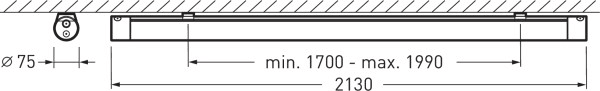 Luminaire tubulaire multivariable et moderne avec un profil de 75 mm de diamètre. En raison de sa résistance aux UV plus élevée, ce luminaire en version PMMA convient à une utilisation dans des extérieurs non abrités. Avec température de surface limitée (DIN EN 60598-2-24, identifiant D). Pour applications individuelles. Profilé cylindrique avec structure prismatique efficace en termes de photométriecomme optique secondaire. La zone de profil est opale au-dessus de la goulotte de montage et translucide au-dessous de celle-ci. À répartition symétrique intensive des intensités lumineuses. Flux lumineux du luminaire et couleur de la lumière fixes. Flux lumineux du luminaire 6400 lm, puissance raccordée 37 W, rendement lumineux maximale du luminaire 173 lm/W. Teinte de lumière blanc neutre, température de couleur (CCT) 4000 K, indice général de rendu des couleurs (IRC) Ra > 80. Tolérance de localisation chromatique (initialement MacAdam) ≤ 3 SDCM. Durée de vie assignée moyenne L80(tq 25 °C) = 70.000 h. Profilé de luminaire étanche au gaz en PMMA. Embout avec structure de surface mate de haute qualité et qualité de surface selon VDI30 en ASA. Couleur des embouts gris (RAL 7035). Ne pas démonter ni ouvrir les embouts. Longueur du luminaire 2065 mm, Hauteur du luminaire 81 mm, Ø Corps de luminaire 81 mm. Le support d'appareils est fixé au profilé du luminaire par des dispositifs transparents pour éviter la formation d'ombres. Température ambiante admissible (ta) -30 °C - 35 °C. Classe électrique (EN 61140) : I, indice de protection (norme EN 60529) : IP69K, degré de résistance aux chocs selon la norme CEI 62262 : IK03, température d’essai au fil incandescent selon la norme CEI 60695-2-11 : 650 °C. Poids: 3.4 kg. Raccordement via un câble 3 pôles sortant vers l’extérieur (3000 mm). Le luminaire convient à un fonctionnement sur un réseau à tension continue 230 V. Avec driver. La certification ENEC par un laboratoire d'essais indépendant est en préparation. Le produit répond aux exigences essentielles des directives européennes applicables et de la loi sur la sécurité des produits et porte le marquage CE. Le luminaire est en outre certifié ENEC par un organisme de contrôle indépendant.