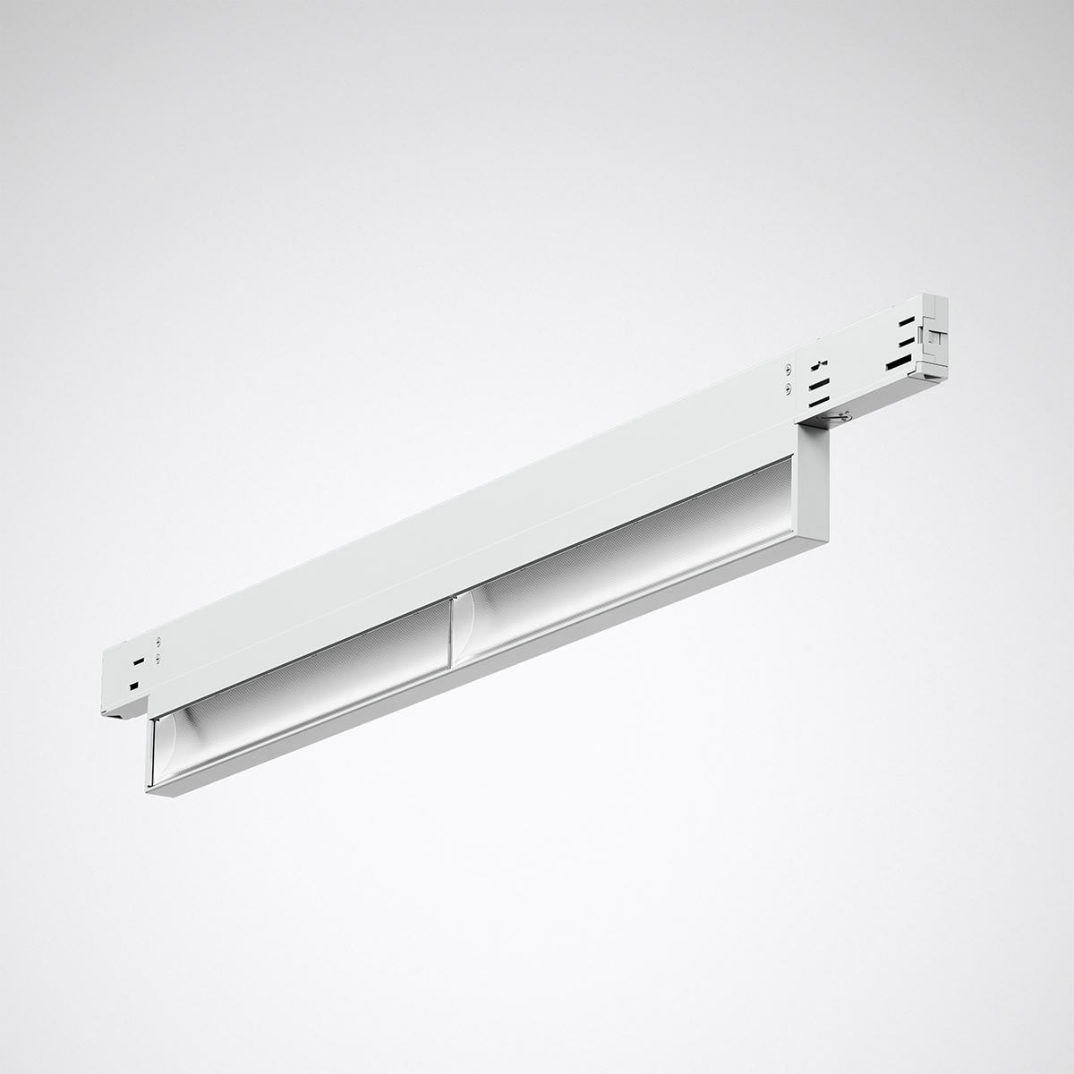 Les modules linéaires affleurants Linell, dont est équipé RAIL de TRILUX, créent un effet lumineux particulier. Les luminaires se fondent entièrement dans le rail 3 allumages. Cette solution d’éclairage élégante est parfaite pour les bureaux. Les modules Linell sont disponibles en trois optiques et longueurs : En opale, avec lentille et en wallwasher en 500 mm, 1000 mm ainsi que 1500 mm.