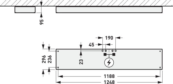 Plafonnier LED rectangulaire pour blocs opératoires et zones de fabrication aux exigences rigoureuses en termes d’hygiène et de pureté de l’air. Convient pour une utilisation dans les entreprises certifiées HACCP, IFS et/ou BRC Global Standard Food. Aptitude certifiée à l’utilisation en salle blanche des classes de propreté DIN EN ISO 14644-1 – Classe 1 selon TÜV Süd. Conforme aux classes A à D du guide des BPF de l’UE. Avec température de surface limitée (DIN EN 60598-2-24, identifiant D). Cache extérieur du luminaire composé d'un verre de sécurité feuilleté transparent très résistant avec un liant pour les éclats et d'un cache translucide en PMMA à l'intérieur. Pour éviter des réflexions incontrôlées lors de l’utilisation de la technique laser, la surface à l’intérieur du luminaire est finement structurée. Résistant aux désinfectants doux et aux rayonnements ultraviolets. Avec une répartition lambertienne des intensités lumineuses. Effet de lumière homogène. Flux lumineux du luminaire et couleur de la lumière fixes. Flux lumineux du luminaire 8500 lm, puissance raccordée 59 W, rendement lumineux maximale du luminaire 144 lm/W. Teinte de lumière blanc neutre, température de couleur (CCT) 4000 K, indice général de rendu des couleurs (IRC) Ra > 90. Tolérance de localisation chromatique (initialement MacAdam) ≤ 3 SDCM. Durée de vie assignée moyenne L80 (tq 40 °C) = 100.000 h., Durée de vie assignée moyenne L90 (tq 25 °C) = 100.000 h. La source lumineuse est remplaçable conformément aux exigences d'écoconception (Règlement (UE) 2019/2020). Corps de luminaire en tôle d’acier, laquage par poudre, blanc L’étanchéité de l’espace au plafond est réalisée par un joint périphérique en mousse polyuréthane. Des fermetures à contact glissant, situées à l’intérieur intègrent automatiquement le cadre à la protection électrique. Dimensions (L x l): 1250 mm x 296 mm, hauteur du luminaire 94 mm. Classe électrique (EN 61140) : I, indice de protection (norme EN 60529) : IP65, Indice de protection par le dessous : IP, degré de résistance aux chocs selon la norme CEI 62262 : IK08, température d’essai au fil incandescent selon la norme CEI 60695-2-11 : 960 °C. Température ambiante admissible (ta): 40 °C Poids: 11.8 kg. Avec appareillage électronique, à gradation numérique (DALI). Appareillage conf. au standard DALI 2 (EN 62386). Possibilité de commutation et de gradation du luminaire au moyen de la fonction bouton-poussoir via les bornes de commande DALI (TouchDim). L'appareillage est remplaçable conformément aux exigences d'écoconception (Règlement (UE) 2019/2020). Ce luminaire qui est prêt au monitoring (MOR) fournit des données d’exploitation permettant une surveillance ou une maintenance prédictive, il est donc compatible avec les services de TRILUX Monitoring Services. Le luminaire est en outre certifié ENEC par un organisme de contrôle indépendant.