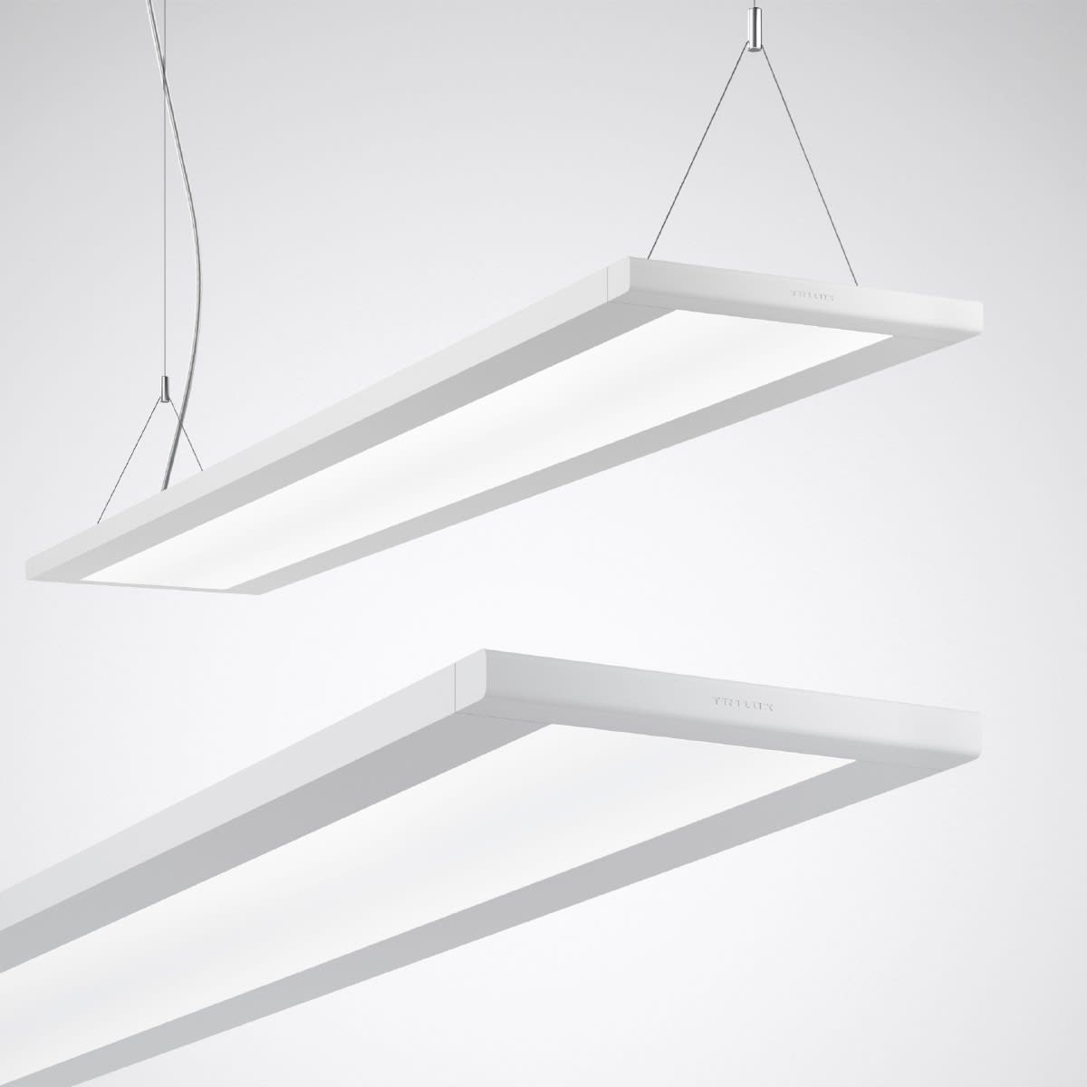 Module de luminaire d’utilisation polyvalente pour luminaires suspendus et plafonniers. Complétés par des accessoires à commander séparément, les modules se transformeront en luminaires individuels ou en applications en ligne continue, à surface de sortie de lumière continue pour un montage suspendu ou en saillie. Avec microprismatique CDP haute efficacité. À répartition symétrique limitée et extensive des intensités lumineuses. Taux d'éblouissement selon classification UGR (EN 12464-1) < 19. Compatible avec les postes de travail informatisés selon la norme EN 12464­1 Effet de lumière homogène. Flux lumineux du luminaire et couleur de la lumière fixes. Système LED disposant d’une LED inclinée, positionnée latéralement par rapport à l’ouverture de sortie de lumière et d’un système à compartiments, assurant une réflexion/transmission très efficace de la lumière. Flux lumineux du luminaire 3500 lm, puissance raccordée 26 W, rendement lumineux maximale du luminaire 135 lm/W. Teinte de lumière blanc neutre, température de couleur (CCT) 4000 K, indice général de rendu des couleurs (IRC) Ra > 80. Tolérance de localisation chromatique (initialement MacAdam) ≤ 3 SDCM. Durée de vie assignée moyenne L80 (tq 25 °C) = 100.000 h., Durée de vie assignée moyenne L90 (tq 25 °C) = 50.000 h. Corps de luminaire en profilé d’aluminium extrudé. Embouts frontaux en aluminium moulé sous pression. Surface à revêtement blanc (similaire à RAL 9016). Dimensions (L x l): 1190 mm x 240 mm, hauteur du luminaire 20 mm. Classe électrique (EN 61140) : I, indice de protection (norme EN 60529) : IP20, degré de résistance aux chocs selon la norme CEI 62262 : IK03, température d’essai au fil incandescent selon la norme CEI 60695-2-11 : 650 °C. Température ambiante admissible (ta): 25 °C . Poids: 3.3 kg. La connexion électrique s’effectue en fixant l’embout frontal de raccordement. Le raccordement électrique des modules se fait automatiquement. Avec driver, dimmable (DALI). Appareillage conf. au standard DALI 2 (EN 62386). Possibilité de commutation et de gradation du luminaire au moyen de la fonction bouton-poussoir via les bornes de commande DALI (TouchDim). L'appareillage est remplaçable conformément aux exigences d'écoconception (Règlement (UE) 2019/2020). Ce luminaire qui est prêt au monitoring (MOR) fournit des données d’exploitation permettant une surveillance ou une maintenance prédictive, il est donc compatible avec les services de TRILUX Monitoring Services. Le produit répond aux exigences essentielles des directives européennes applicables et de la loi sur la sécurité des produits et porte le marquage CE. Le luminaire est en outre certifié ENEC par un organisme de contrôle indépendant.