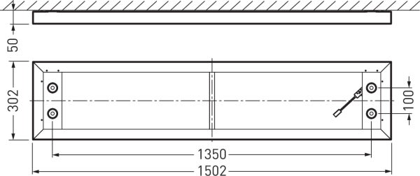 Plafonnier LED, à diffuseur en PMMA translucide. Diffuseur en PMMA translucide aux liserets décoratifs à effet photométrique. À répartition symétrique limitée et extensive des intensités lumineuses. Taux d'éblouissement selon classification UGR (EN 12464-1) < 19. Flux lumineux du luminaire et couleur de la lumière fixes. Flux lumineux du luminaire 6000 lm - 6000 lm, puissance raccordée 54 W - 54 W, rendement lumineux maximale du luminaire 111 lm/W. Teinte de lumière blanc chaud ou blanc neutre, température de couleur (CCT) 3000 K ou 4000 K, indice général de rendu des couleurs (IRC) Ra > 80. Tolérance de localisation chromatique (initialement MacAdam) ≤ 5 SDCM. Durée de vie assignée moyenne L70 (tq 25 °C) = 50.000 h. Corps de luminaire en aluminium. Surface à revêtement blanc (similaire à RAL 9016). Dimensions (L x l): 1525 mm x 325 mm, hauteur du luminaire 46 mm. Classe électrique (EN 61140) : I, indice de protection (norme EN 60529) : IP20, degré de résistance aux chocs selon la norme CEI 62262 : IK02, température d’essai au fil incandescent selon la norme CEI 60695-2-11 : 650 °C. Température ambiante admissible (ta): 25 °C . Poids: 4.3 kg. Avec appareillage électronique, à gradation numérique (DALI). Appareillage conf. au standard DALI 2 (EN 62386). Possibilité de commutation et de gradation du luminaire au moyen de la fonction bouton-poussoir via les bornes de commande DALI (TouchDim). L'appareillage est remplaçable conformément aux exigences d'écoconception (Règlement (UE) 2019/2020). Le produit répond aux exigences essentielles des directives européennes applicables et de la loi sur la sécurité des produits et porte le marquage CE. Le luminaire est en outre certifié ENEC par un organisme de contrôle indépendant.