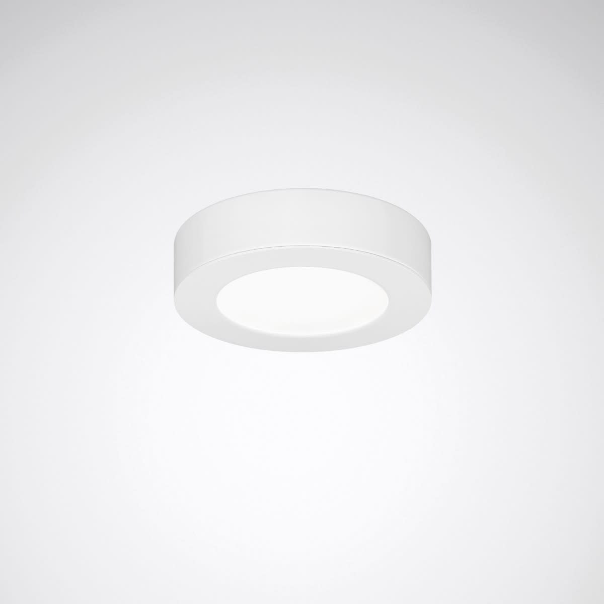 Plafonnier LED rond avec plaque de recouvrement opale en PMMA. Avec plaque de recouvrement en PMMA opale. Avec une répartition lambertienne des intensités lumineuses. Flux lumineux du luminaire et couleur de la lumière fixes. Flux lumineux du luminaire 1300 lm, puissance raccordée 15 W, rendement lumineux maximale du luminaire 87 lm/W. Teinte de lumière blanc chaud, température de couleur (CCT) 3000 K, indice général de rendu des couleurs (IRC) Ra > 80. Tolérance de localisation chromatique (initialement MacAdam) ≤ 4 SDCM. Durée de vie assignée moyenne L80 (tq 25 °C) = 50.000 h. Corps du luminaire en fonte d’aluminium. Surface à revêtement blanc (similaire à RAL 9016). Diamètre du luminaire Ø 180 mm, hauteur du luminaire 45 mm. Classe électrique (EN 61140) : II, indice de protection (norme EN 60529) : IP40, degré de résistance aux chocs selon la norme CEI 62262 : IK05, température d’essai au fil incandescent selon la norme CEI 60695-2-11 : 650 °C. Température ambiante admissible (ta): -20 °C à 25 °C. Poids: 0.7 kg. Avec driver, dimmable (DALI). Appareillage conf. au standard DALI 2 (EN 62386). Possibilité de commutation et de gradation du luminaire au moyen de la fonction bouton-poussoir via les bornes de commande DALI (TouchDim). L'appareillage est remplaçable conformément aux exigences d'écoconception (Règlement (UE) 2019/2020). Le produit répond aux exigences essentielles des directives européennes applicables et de la loi sur la sécurité des produits et porte le marquage CE. Le luminaire est en outre certifié ENEC par un organisme de contrôle indépendant.
