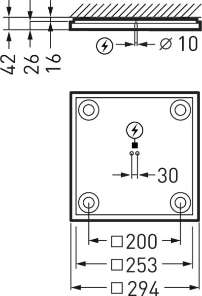 Plafonnier LED carré, à diffuseur microprismatique PW. Le système optique se compose d’une vasque en PMMA très efficace à microprismatique. La surface prismatique en PMMA, microstructurée du système optique a un effet anti-éblouissement, elle est anti-jaunissement et anti-opacité. À répartition symétrique extensive des intensités lumineuses. Effet lumineux harmonieux grâce à une sortie de lumière uniformément éclairée. Personnalisation de la surface de sortie de lumière (notamment par impression) et autres solutions spéciales, possibles sur demande. Flux lumineux du luminaire et couleur de la lumière fixes. Flux lumineux du luminaire 2000 lm, puissance raccordée 15 W, rendement lumineux maximale du luminaire 133 lm/W. Teinte de lumière blanc neutre, température de couleur (CCT) 4000 K, indice général de rendu des couleurs (IRC) Ra > 80. Tolérance de localisation chromatique (initialement MacAdam) ≤ 3 SDCM. Durée de vie assignée moyenne L80 (tq 25 °C) = 100.000 h., Durée de vie assignée moyenne L90 (tq 25 °C) = 50.000 h. La source lumineuse est remplaçable conformément aux exigences d'écoconception (Règlement (UE) 2019/2020). Le plafonnier se compose d’un corps de montage à unité d’éclairage, d’un connecteur rapide et de l’appareillage ainsi que d’une unité d’éclairage en applique comportant système LED, diffuseur, connecteur rapide et cadre. Surface à revêtement blanc (similaire à RAL 9016). Dimensions (L x l): 294 mm x 294 mm, hauteur 42 mm. Classe électrique (EN 61140) : I, indice de protection (norme EN 60529) : IP40, degré de résistance aux chocs selon la norme CEI 62262 : IK03, température d’essai au fil incandescent selon la norme CEI 60695-2-11 : 650 °C. Température ambiante admissible (ta): 25 °C . Poids: 2.0 kg. Avec appareillage électronique, à gradation numérique (DALI) Appareillage conf. au standard DALI 2 (EN 62386). Possibilité de commutation et de gradation du luminaire au moyen de la fonction bouton-poussoir via les bornes de commande DALI (TouchDim). L'appareillage est remplaçable conformément aux exigences d'écoconception (Règlement (UE) 2019/2020). Appareillage protégé contre le mode à vide, les raccordements incorrects, les courts-circuits, surcharges et surtempératures. La certification ENEC par un laboratoire d'essais indépendant est en préparation. Ce luminaire qui est prêt au monitoring (MOR) fournit des données d’exploitation permettant une surveillance ou une maintenance prédictive, il est donc compatible avec les services de TRILUX Monitoring Services. Le produit répond aux exigences essentielles des directives européennes applicables et de la loi sur la sécurité des produits et porte le marquage CE.