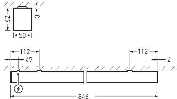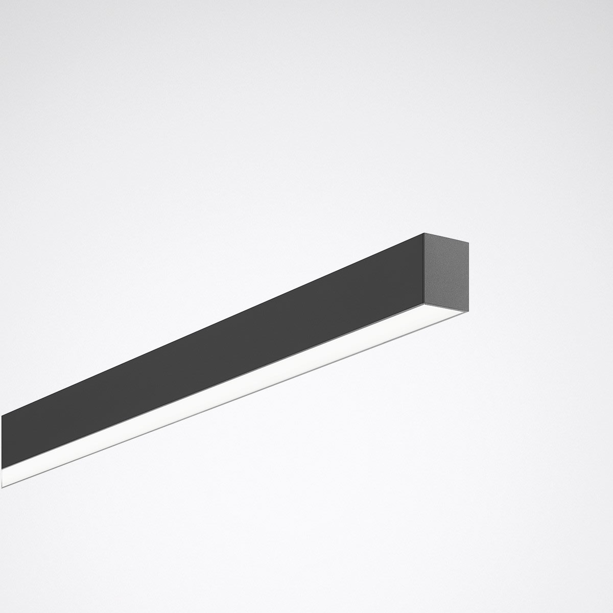 Luminaire individuel du système de canaux lumineux (montage en saillie au plafond) pour une mise en scène architecturale de l’éclairage. Ce luminaire fait partie d’une gamme de luminaires encastrés, de plafonniers et de luminaires suspendus, dont l’aspect est harmonisé. Tous les accessoires indispensables au système (agrafes d’installation/de fixation au plafond et embouts frontaux) sont inclus dans la livraison. Le diffuseur en PMMA opale, finement structuré et à éclairage homogène est monté en affleurement. Avec une répartition lambertienne des intensités lumineuses. Flux lumineux du luminaire et couleur de la lumière fixes. Flux lumineux du luminaire 2000 lm, puissance raccordée 20 W, rendement lumineux maximale du luminaire 100 lm/W. Teinte de lumière blanc neutre, température de couleur (CCT) 4000 K, indice général de rendu des couleurs (IRC) Ra > 80. Tolérance de localisation chromatique (initialement MacAdam) ≤ 3 SDCM. Durée de vie assignée moyenne L90 (tq 25 °C) = 50.000 h., Durée de vie assignée moyenne L80 (tq 25 °C) = 100.000 h. La source lumineuse est remplaçable conformément aux exigences d'écoconception (Règlement (UE) 2019/2020). Éléments de canal en profilé extrudé d’aluminium, embouts frontaux en plastique (PMMA). Surface à revêtement noir (similaire à RAL 9005). Dimensions (L x l): 846 mm x 50 mm, hauteur du luminaire 62 mm. Classe électrique (EN 61140) : I, indice de protection (norme EN 60529) : IP20, degré de résistance aux chocs selon la norme CEI 62262 : IK03, température d’essai au fil incandescent selon la norme CEI 60695-2-11 : 650 °C. Température ambiante admissible (ta): 25 °C . Poids: 2.1 kg. Le raccordement au réseau s'effectue au moyen d'une borne à 5 pôles jusqu'à 1,5 mm2. Avec driver, dimmable (DALI). Appareillage conf. au standard DALI 2 (EN 62386). L'appareillage est remplaçable conformément aux exigences d'écoconception (Règlement (UE) 2019/2020). Ce luminaire qui est prêt au monitoring (MOR) fournit des données d’exploitation permettant une surveillance ou une maintenance prédictive, il est donc compatible avec les services de TRILUX Monitoring Services. Le produit répond aux exigences essentielles des directives européennes applicables et de la loi sur la sécurité des produits et porte le marquage CE.