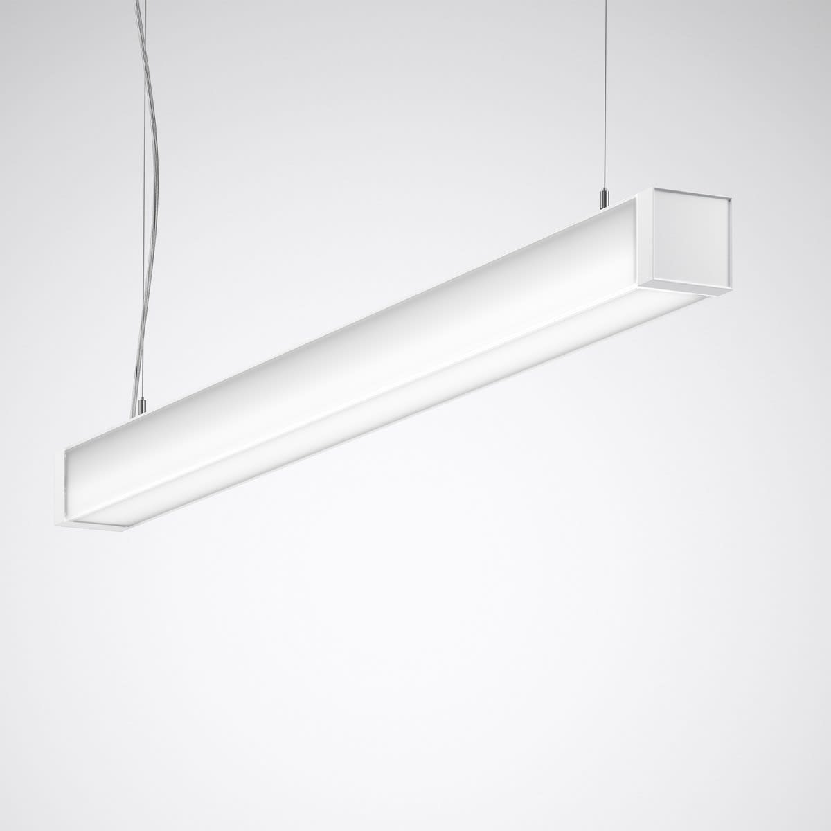 Luminaire de forme rectangulaire avec des bords précis. Convient pour une utilisation dans les entreprises certifiées HACCP, IFS et/ou BRC Global Standard Food. Avec température de surface limitée (DIN EN 60598-2-24, identifiant D). Montage suspendu possible avec accessoires optionnels. Profilé carré, translucide, pour un éclairage sans éblouissement et atmosphérique. À répartition symétrique limitée et extensive des intensités lumineuses. Taux d'éblouissement selon classification UGR (EN 12464-1) < 19. Compatible avec les écrans informatiques selon la norme EN 12464-1 grâce à des luminosités réduites L ≤ 3 000 cd/2 pour des angles d’éclairage supérieurs à 65 °, de manière omnidirectionnelle. Flux lumineux du luminaire et couleur de la lumière fixes. Flux lumineux du luminaire 4600 lm, puissance raccordée 31 W, rendement lumineux maximale du luminaire 148 lm/W. Teinte de lumière blanc chaud, température de couleur (CCT) 3000 K, indice général de rendu des couleurs (IRC) Ra > 80. Tolérance de localisation chromatique (initialement MacAdam) ≤ 3 SDCM. Durée de vie assignée moyenne L80 (tq 25 °C) = 50.000 h. La source lumineuse est remplaçable conformément aux exigences d'écoconception (Règlement (UE) 2019/2020). Corps du luminaire incolore, en PMMA translucide et résilient aux chocs. Embouts frontaux en aluminium moulé sous pression. Les têtes sont à commander comme accessoires séparés. En blanc (similaire à RAL 9016). Dimensions (L x l x H) : 1498 mm x 75 mm x 75 mm. Classe électrique (EN 61140) : I, indice de protection (norme EN 60529) : IP54, degré de résistance aux chocs selon la norme CEI 62262 : IK03, température d’essai au fil incandescent selon la norme CEI 60695-2-11 : 650 °C. Température ambiante admissible (ta): -25 °C à 35 °C. Poids: 2.2 kg. Le raccordement s'effectue au moyen d'une borne enfichable avec équipement de repiquage secteur. Avec appareillage électronique, à gradation numérique (DALI). Appareillage conf. au standard DALI 2 (EN 62386). Possibilité de commutation et de gradation du luminaire au moyen de la fonction bouton-poussoir via les bornes de commande DALI (TouchDim). Le produit répond aux exigences essentielles des directives européennes applicables et de la loi sur la sécurité des produits et porte le marquage CE.