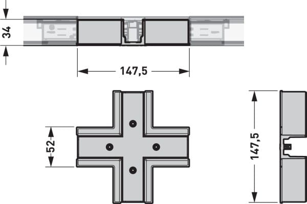 Plaque de recouvrement pour un connecteur en X du système de rails conducteurs triphasé avec équipement DALI. À utiliser en combinaison avec système de rails conducteurs triphasé (DALI) - Rail C. Couleur noir (similaire à RAL 9005). Dimensions (L x l x H) : 148 mm x 148 mm x 34 mm.