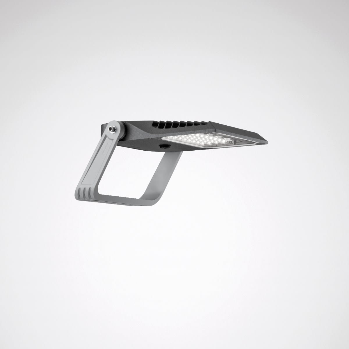 Projecteur LED pour illumination de surfaces. Le luminaire satisfait aux exigences de la norme EN 60598, il a été conçu pour des actions du vent selon la norme EN 1991 (Eurocode), la valeur de base maximale de la vitesse de référence du vent étant de 30 m/s (correspondant à la zone de vent 4 en Allemagne) dans la catégorie de terrain I. Tête de projecteur pivotant sur l'étrier de montage grâce au montage à 1 point. Blocage de la position de pivotement par des arrêts dentés. La tête du projecteur et l'étrier de montage sont entièrement montés à la livraison. Montage sur mât possible pour une application unique ou multiple au moyen d'accessoires. En version MLT (Technologie Multi Lens), composé de systèmes de lentilles hautement efficaces, résistants aux UV et aux températures extrêmes, en montage quadruple. À répartition semi-extensive asymétrique des intensités lumineuses. D’autres faisceaux sont disponibles pour une adaptation flexible à des tâches d’éclairage personnalisées client. Flux lumineux du luminaire et couleur de lumière fixes, avec maintien du flux lumineux en fin de vie (CLO). Système LED composé de 12 modules MLT LED, équipés chacun de 4 LED. Flux lumineux du luminaire 13500 lm, puissance raccordée 93 W, rendement lumineux maximale du luminaire 145 lm/W. Teinte de lumière blanc chaud, température de couleur (CCT) 3000 K, Disponible sur demande également en version Tunable White (2200 K – 4000 K). indice général de rendu des couleurs (IRC) Ra > 70. Tolérance de localisation chromatique (initialement MacAdam) ≤ 5 SDCM. Durée de vie assignée moyenne LCLO (tq 25 °C) = 100.000 h. La source lumineuse est remplaçable conformément aux exigences d'écoconception (Règlement (UE) 2019/2020). Corps du luminaire et support de la vitre de fermeture en aluminium moulé sous pression. Verre de fermeture en verre de sécurité simple plan, maintenu dans un cadre support. Corps du luminaire (couleur primaire) et étrier de retenue (couleur supplémentaire) de couleur contrastée. Couleur primaire anthracite (similaire à DB 703), couleur supplémentaire gris argent (similaire à RAL 9006). Boîtier de luminaire très résistant aux intempéries, revêtement poudré. Possibilité d’autres variantes de couleur selon RAL ou code couleur DB. Dimensions (L x l): 503 mm x 390 mm, hauteur 240 mm. Résistant aux chocs des balles selon DIN 18032-3. Classe électrique (EN 61140) : I, indice de protection (norme EN 60529) : IP66, degré de résistance aux chocs selon la norme CEI 62262 : IK09. Température ambiante admissible (ta): -40 °C à 25 °C. Surface exposée au vent Fw . Poids: 8.0 kg. Avec appareillage électronique, à gradation numérique (DALI). Appareillage conf. au standard DALI 2 (EN 62386). L'appareillage est remplaçable conformément aux exigences d'écoconception (Règlement (UE) 2019/2020). Résistance aux pics de tension Mode différentiel / mode commun : 6 kV / 10 kV. Le luminaire est en outre certifié ENEC par un organisme de contrôle indépendant.