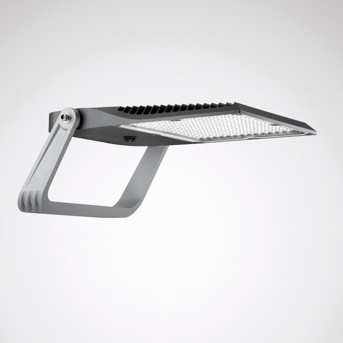 Projecteur LED pour illumination de surfaces. Avec équipement SLR (Smart Lighting Ready). Socle Zhaga sur la tête du luminaire en haut. Le luminaire conçu pour la norme D4i est certifié Zhaga/D4i. Le luminaire satisfait aux exigences de la norme EN 60598, il a été conçu pour des actions du vent selon la norme EN 1991 (Eurocode), la valeur de base maximale de la vitesse de référence du vent étant de 30 m/s (correspondant à la zone de vent 4 en Allemagne) dans la catégorie de terrain I. Tête de projecteur pivotant sur l'étrier de montage grâce au montage à 1 point. Blocage de la position de pivotement par des arrêts dentés. La tête du projecteur et l'étrier de montage sont entièrement montés à la livraison. En version MLT (Technologie Multi Lens), composé de systèmes de lentilles hautement efficaces, résistants aux UV et aux températures extrêmes, en montage quadruple. À répartition semi-extensive asymétrique des intensités lumineuses. D’autres faisceaux sont disponibles pour une adaptation flexible à des tâches d’éclairage personnalisées client. Flux lumineux du luminaire et couleur de lumière fixes, avec maintien du flux lumineux en fin de vie (CLO). Système LED composé de 36 modules LED MLT avec 4 LED chacun. Flux lumineux du luminaire 38000 lm, puissance raccordée 231 W, rendement lumineux maximale du luminaire 165 lm/W. Teinte de lumière blanc neutre, température de couleur (CCT) 4000 K, indice général de rendu des couleurs (IRC) Ra > 70. Tolérance de localisation chromatique (initialement MacAdam) ≤ 5 SDCM. Durée de vie assignée moyenne LCLO(tq 25 °C) = 100.000 h. La source lumineuse est remplaçable conformément aux exigences d'écoconception (Règlement (UE) 2019/2020). Corps du luminaire et support de la vitre de fermeture en aluminium moulé sous pression. Verre de fermeture en verre de sécurité simple plan, maintenu dans un cadre support. Corps du luminaire (couleur primaire) et étrier de retenue (couleur supplémentaire) de couleur contrastée. Couleur primaire anthracite (DB 703), couleur supplémentaire gris argenté (RAL 9006). Boîtier de luminaire très résistant aux intempéries, revêtement poudré. Possibilité d’autres variantes de couleur selon RAL ou code couleur DB. Dimensions (L x l): 808 mm x 590 mm, hauteur 333.4 mm. Résistant aux chocs des balles selon DIN 18032-3. Classe électrique (EN 61140) : I, indice de protection (norme EN 60529) : IP66, degré de résistance aux chocs selon la norme CEI 62262 : IK09. Surface exposée au vent Fw . Poids: 23.0 kg. Avec driver. L'appareillage est remplaçable conformément aux exigences d'écoconception (Règlement (UE) 2019/2020). Résistance aux pics de tension Mode différentiel / mode commun : 6 kV / 10 kV. Le produit répond aux exigences essentielles des directives européennes applicables et de la loi sur la sécurité des produits et porte le marquage CE. Le luminaire est en outre certifié ENEC par un organisme de contrôle indépendant.