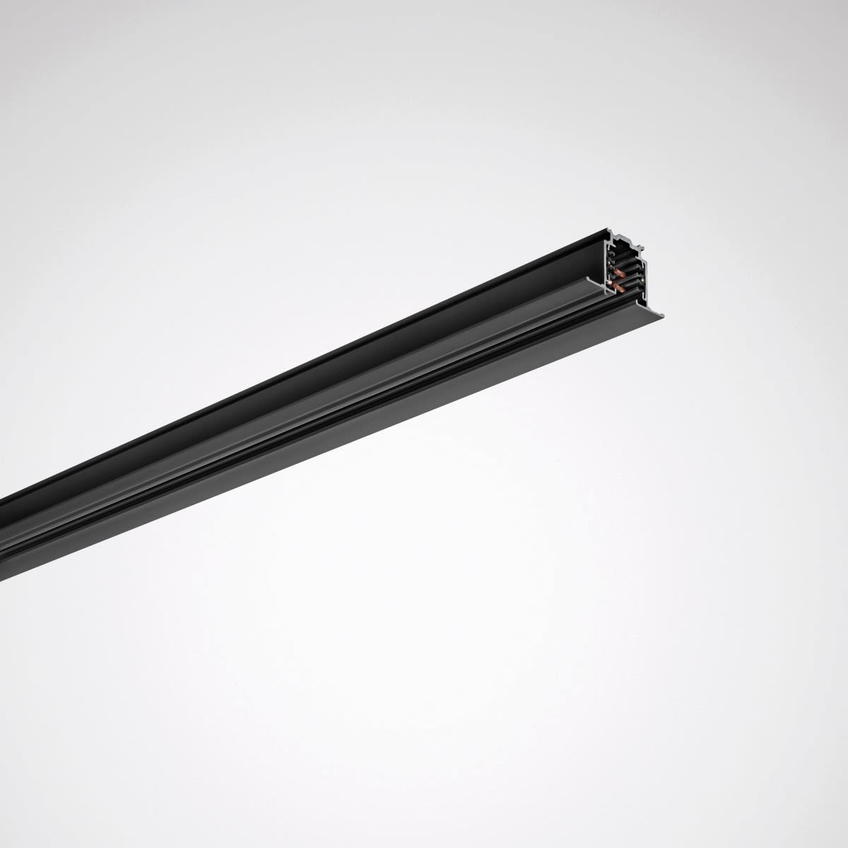 Rail conducteur triphasé encastré (5 conducteurs), système NORDIC. Surface lisse, brillante, laquée en noir, (similaire à RAL 9005). Dimensions (L x l): 1000 mm x 56 mm. hauteur 32,5 mm.