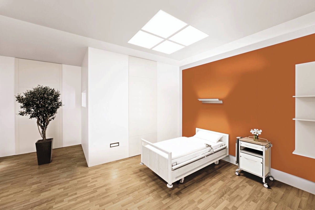 Dans le domaine de la santé, un design attrayant prend de plus en plus d'importance. Esthétique et sobre, Sanesca LED s’intègre harmonieusement aux chambres de patient. Sa grande flexibilité permet de mettre en œuvre un concept d'éclairage homogène dans différentes zones. Ce luminaire combine éclairage général à répartition indirecte et éclairage de lecture direct, sans aucun éblouissement, tout en créant une atmosphère de bien-être pour les patients.