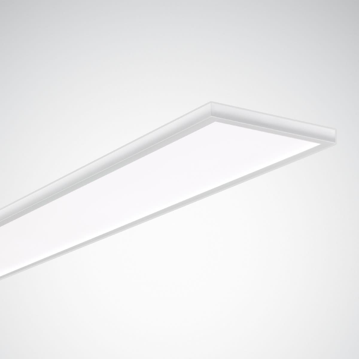 Plafonnier LED avec recouvrement prismatique. Plafonnier pour montage au plafond. Pour une répartition intensive des intensités lumineuses. Taux d'éblouissement selon classification UGR (EN 12464-1) < 19. Compatible avec les écrans informatiques selon la norme EN 12464-1 grâce à des luminosités réduites L ≤ 3 000 cd/2 pour des angles d’éclairage supérieurs à 65 °, de manière omnidirectionnelle. Flux lumineux du luminaire 4400 lm, puissance raccordée 40,00 W, rendement lumineux du luminaire 110 lm/W. Teinte de lumière blanc neutre, température de couleur (CCT) 4000 K, indice général de rendu des couleurs (IRC) Ra > 80. Durée de vie assignée moyenne L80(tq 25 °C) = 35.000 h. Corps de luminaire en aluminium. Surface au revêtement blanc (RAL 9016). Dimensions (L x l): 1496 mm x 295 mm, hauteur du luminaire 60 mm. Classe électrique (EN 61140) : I, indice de protection (norme EN 60529) : IP20, degré de résistance aux chocs selon la norme CEI 62262 : IK02, température d’essai au fil incandescent selon la norme CEI 60695-2-11 : 650 °C. Poids: 6,1 kg. Avec driver. L'appareillage est remplaçable conformément aux exigences d'écoconception (Règlement (UE) 2019/2020). Le produit répond aux exigences essentielles des directives européennes applicables et de la loi sur la sécurité des produits et porte le marquage CE. Le luminaire est en outre certifié ENEC par un organisme de contrôle indépendant.