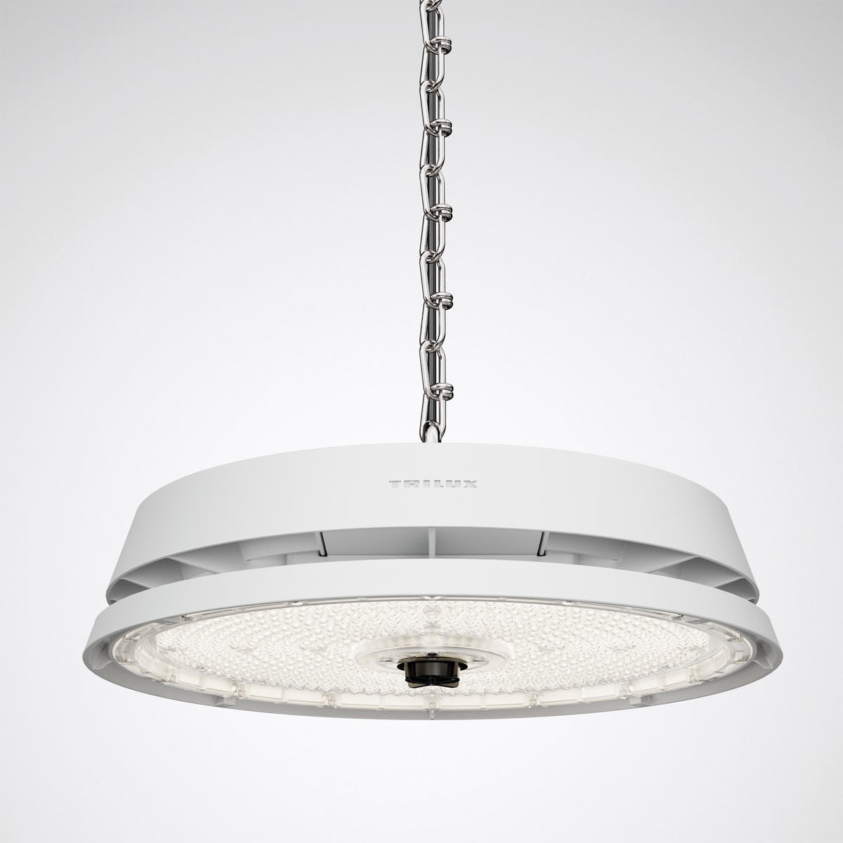 Projecteur industriel robuste à LED avec interface Zhaga. Avec équipement SLR (Smart Lighting Ready). Le luminaire est conçu pour le standard D4i. L'interface Zhaga ne fournit pas d'alimentation 24V DC (sans élément DALI 150). Convient pour une utilisation dans les entreprises certifiées HACCP, IFS et/ou BRC Global Standard Food. Avec température de surface limitée (DIN EN 60598-2-24, identifiant D). À répartition symétrique extensive des intensités lumineuses. Flux lumineux du luminaire et couleur de la lumière fixes. Flux lumineux du luminaire 15000 lm, puissance raccordée 85 W, rendement lumineux maximale du luminaire 176 lm/W. Teinte de lumière blanc neutre, température de couleur (CCT) 4000 K, indice général de rendu des couleurs (IRC) Ra > 80. Tolérance de localisation chromatique (initialement MacAdam) ≤ 3 SDCM. Durée de vie assignée moyenne L80 (tq 35 °C) = 100.000 h, L80 (tq 50 °C) = 70.000 h. La source lumineuse est remplaçable conformément aux exigences d'écoconception (Règlement (UE) 2019/2020). Corps en aluminium moulé sous pression à symétrie en rotation. Avec contour décalé pour une gestion thermique optimale et une circulation de l’air élevée. Surface à revêtement blanc (similaire à RAL 9016). Autres couleurs disponibles sur demande. Diamètre du luminaire Ø 421 mm, Hauteur du luminaire 169 mm. Classe électrique (EN 61140) : I, indice de protection (norme EN 60529) : IP65, degré de résistance aux chocs selon la norme CEI 62262 : IK08, température d’essai au fil incandescent selon la norme CEI 60695-2-11 : 850 °C. Température ambiante admissible (ta): -30 °C à 50 °C. Poids: 6.7 kg. Le raccordement du luminaire s’effectue sans ouvrir son corps grâce au câble d’alimentation sortant vers l’extérieur. Longueur du câble d’alimentation 1,5 m. Avec appareillage électronique, commutable. L'appareillage est remplaçable conformément aux exigences d'écoconception (Règlement (UE) 2019/2020). Ce luminaire qui est prêt au monitoring (MOR) fournit des données d’exploitation permettant une surveillance ou une maintenance prédictive, il est donc compatible avec les services de TRILUX Monitoring Services. Le produit répond aux exigences essentielles des directives européennes applicables et de la loi sur la sécurité des produits et porte le marquage CE. Le luminaire est en outre certifié ENEC par un organisme de contrôle indépendant.