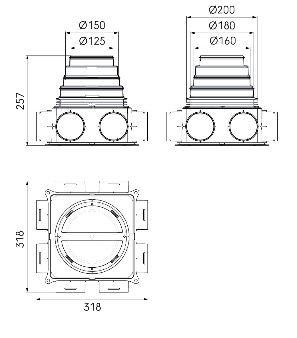 Caisson multidiamètres modulable Pour le neuf et la rénovation Raccordement vertical ou horizontal des caissons entre-eux Entretien et maintenance faciles Équipé de réducteurs de débits Équipé d'un adaptateur multidiamètres muni de joints