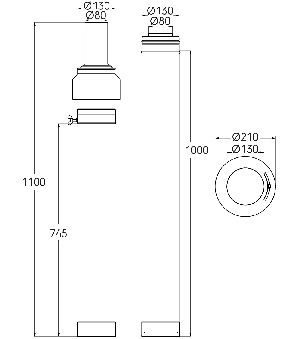 Kit 3CEp toiture diamètre 80/130 polypropylène/acier hauteur 2500mm avec terminal noir.