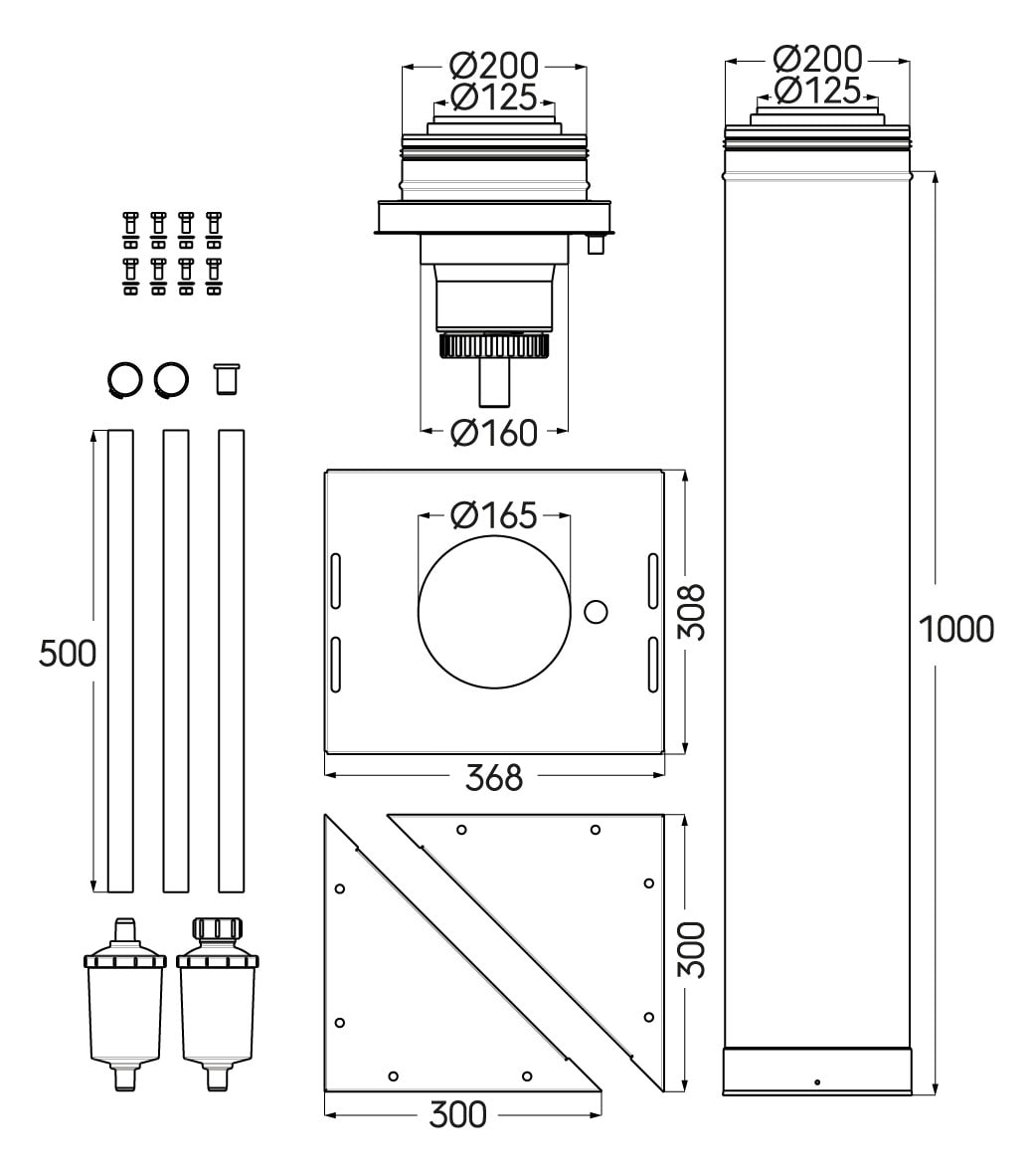 Kit départ pour système collectif concentrique 3CET diamètre 125/200 sans piquage pour appareil avec support chaise murale.