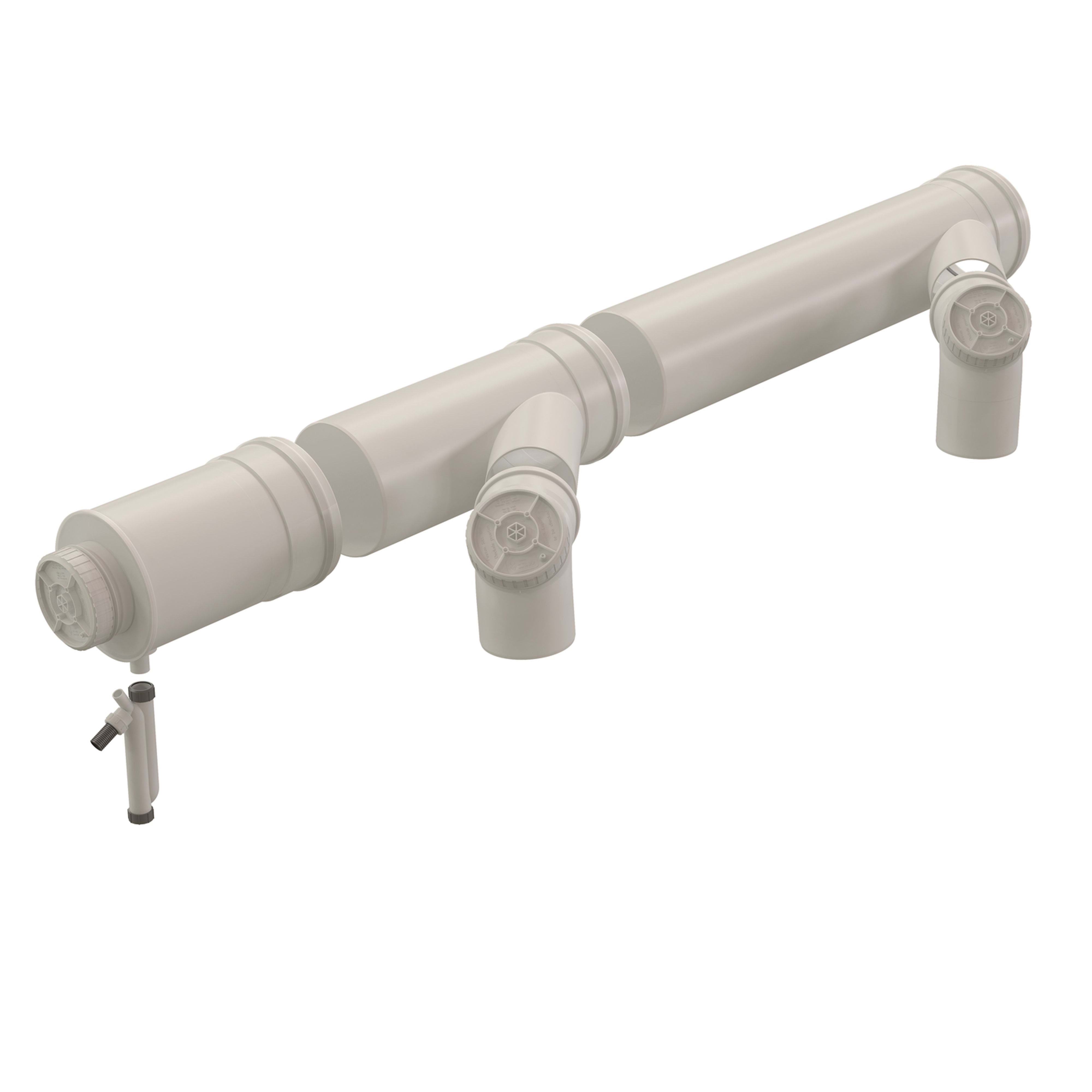 Ce kit de base Cascade Condensation permet de raccorder deux chaudières. Il contient : coudes de visite, collecteur, tampon de visite et siphon. Les conduits PPTL permettent de visualiser l'intérieur du conduit sans démontage, idéal pour la maintenance.