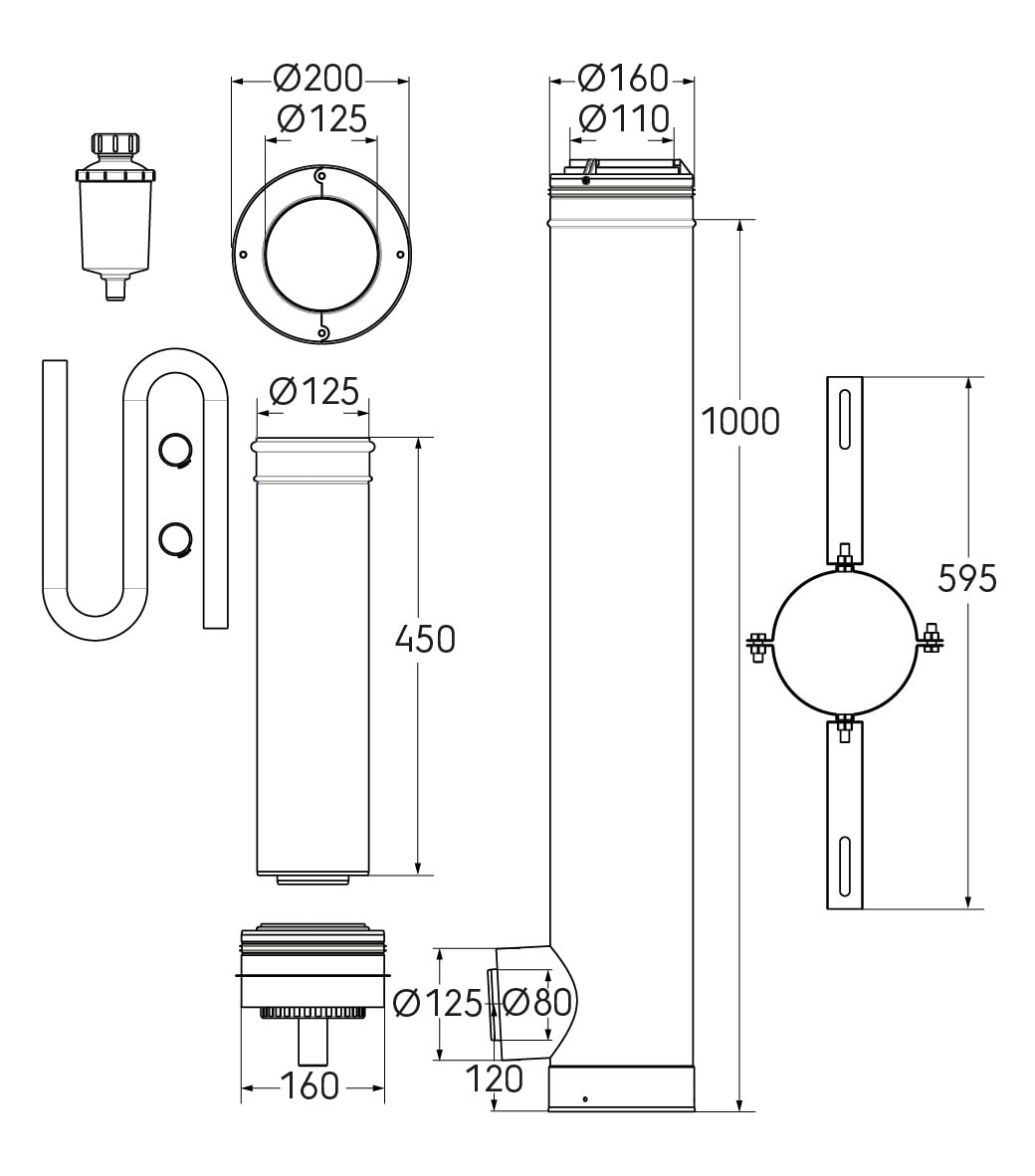 Kit départ Rolux 3CEp Condensation diamètre 110/160mm 1 appareil pose suspendue.