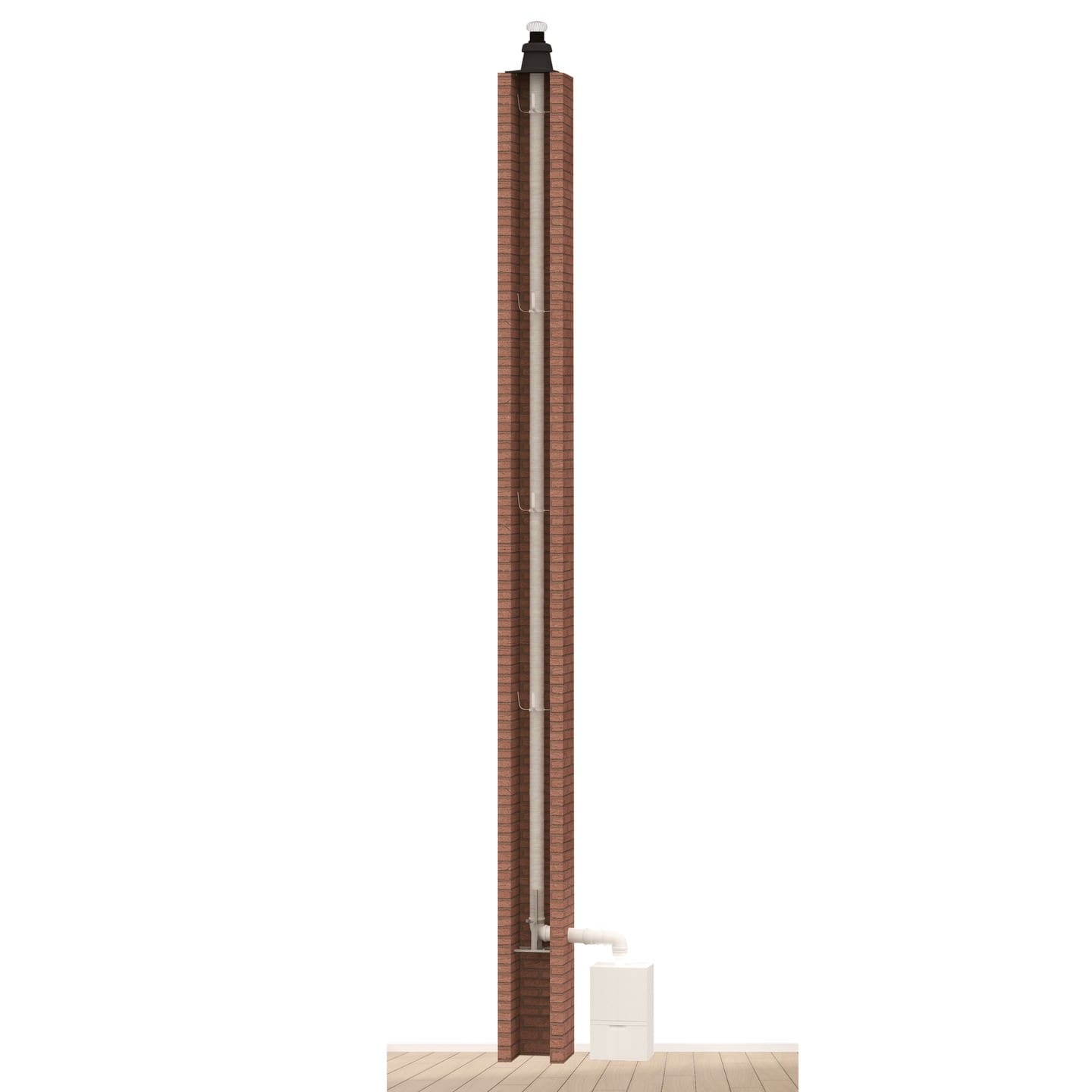 Renolux Condensation permet la réhabilitation d'un conduit existant pour l'implantation d'un appareil étanche de type C9. Le système est vendu en kit, ocre ou noir, et comprend tous les éléments nécessaires pour une installation complète.