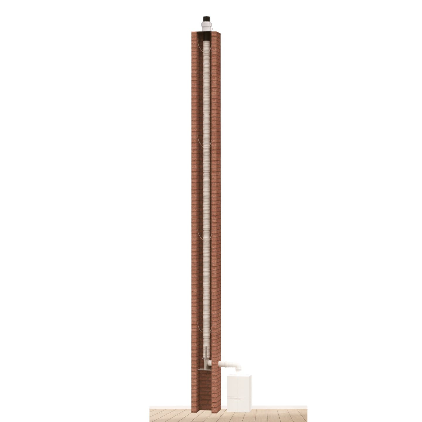 Chemilux Condensation permet la réhabilitation d'un conduit existant pour l'implantation d'un appareil non étanche de type B22p / B23p. Le système est vendu en kit, ocre ou noir, et comprend tous les éléments nécessaires pour une installation complète.