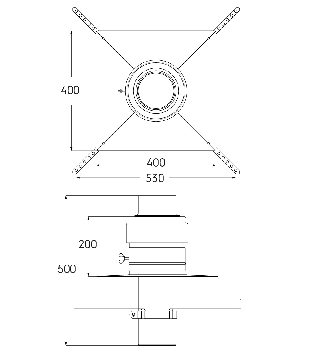 Kit B22-B23 Chemilux Condensation diamètre 125mm pour installation en entrée murale avec conduit flexible, inox.
