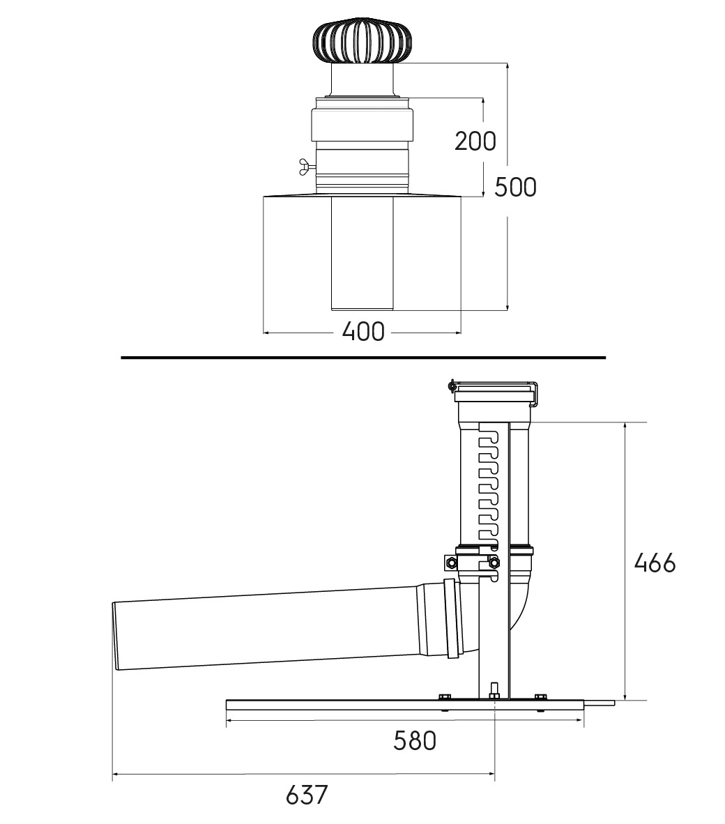 Kit B22p-B23p Chemilux Condensation diamètre 125mm entrée murale pour conduit rigide, inox.