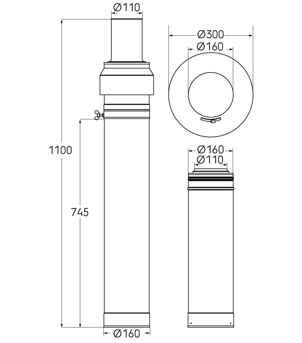 Kit terminal Rolux 3CEp Condensation diamètre 110/160mm ocre hauteur 2000mm