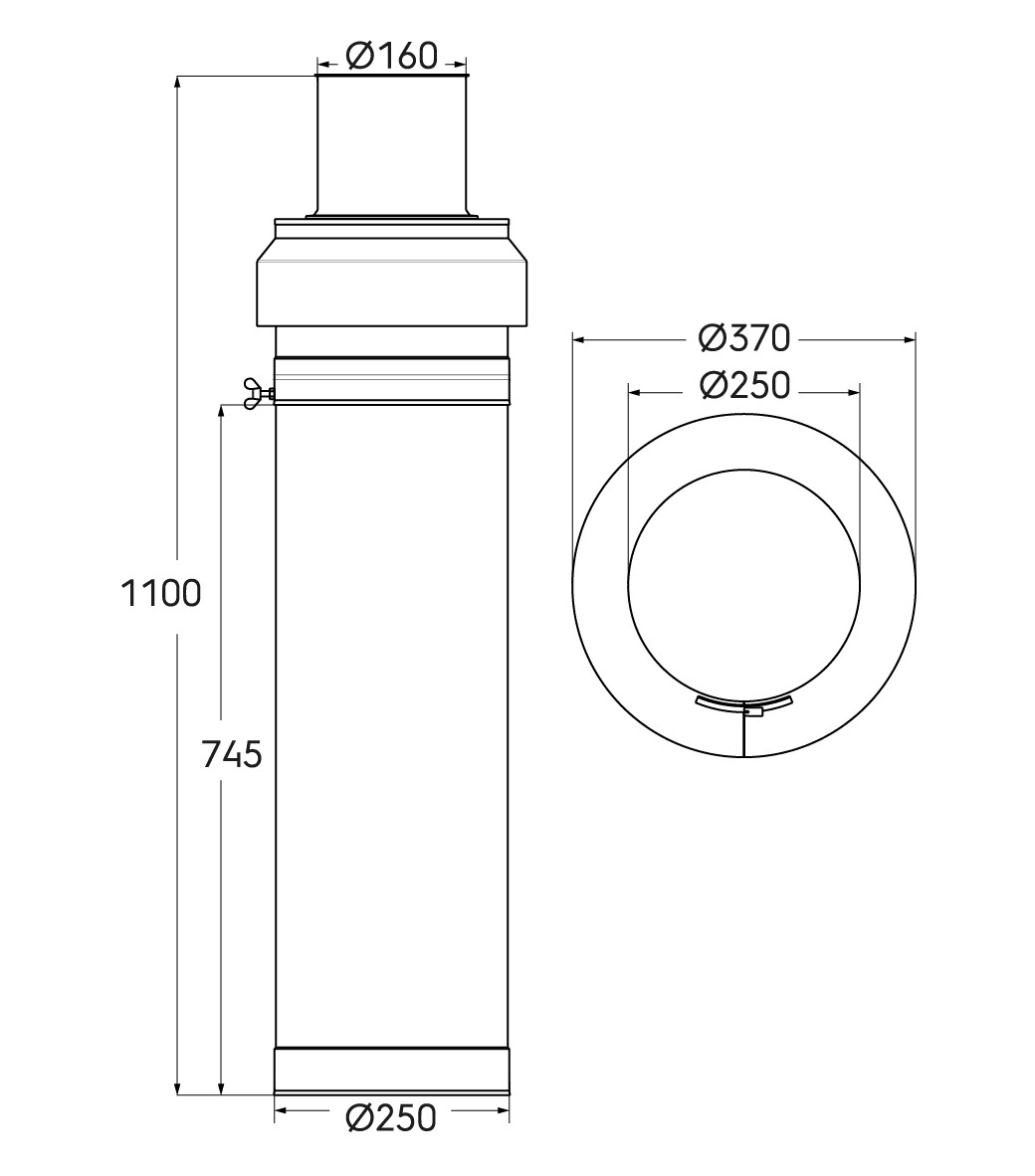 Kit terminal Rolux 3CEp Condensation diamètre 160/250mm hauteur 1500mm, inox.