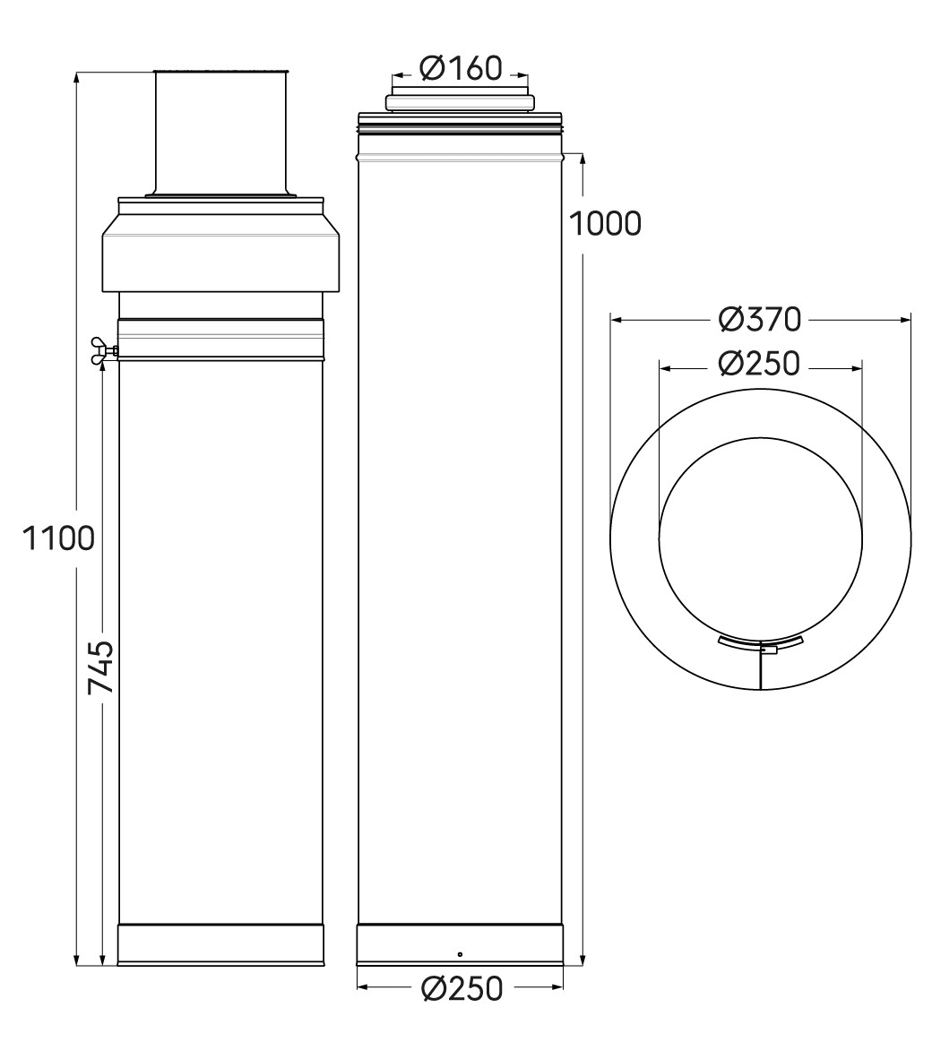 Kit terminal Rolux 3CEp Condensation diamètre 160/250mm hauteur 2500mm, inox.