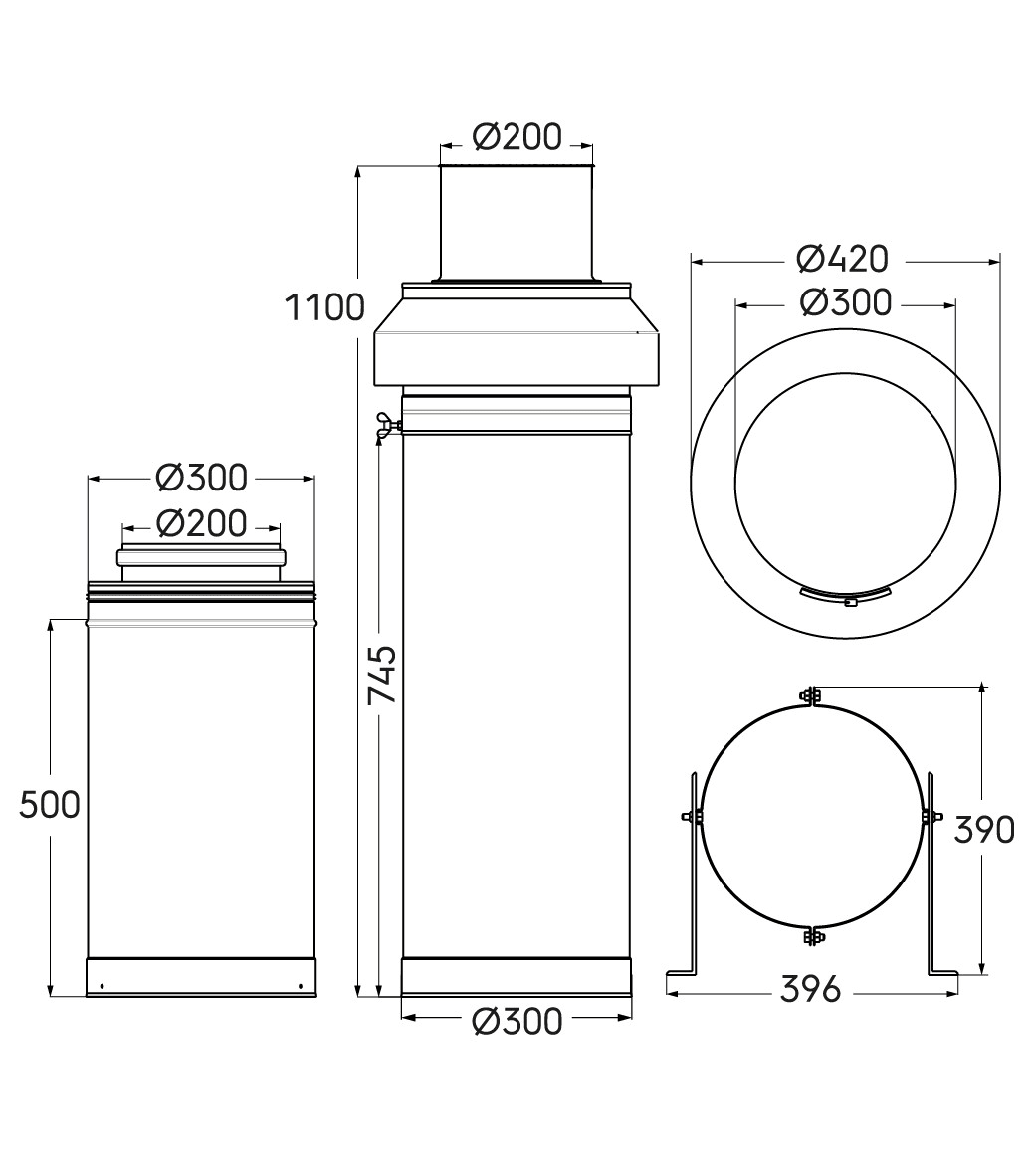 Kit terminal Rolux 3CEp Condensation diamètre 200/300mm hauteur 2000mm, noir.