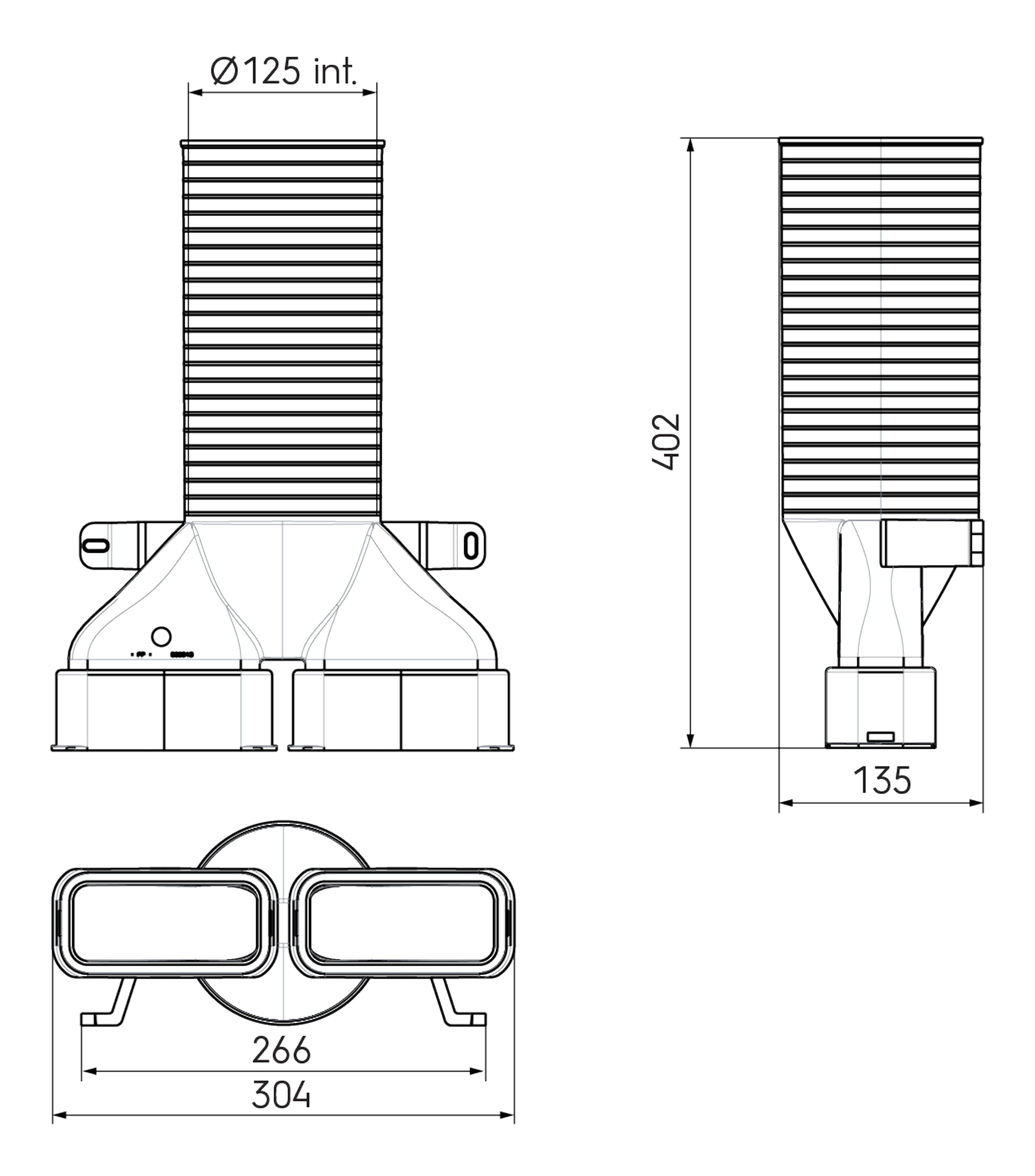 largeur du raccordement de canal - 132 mm