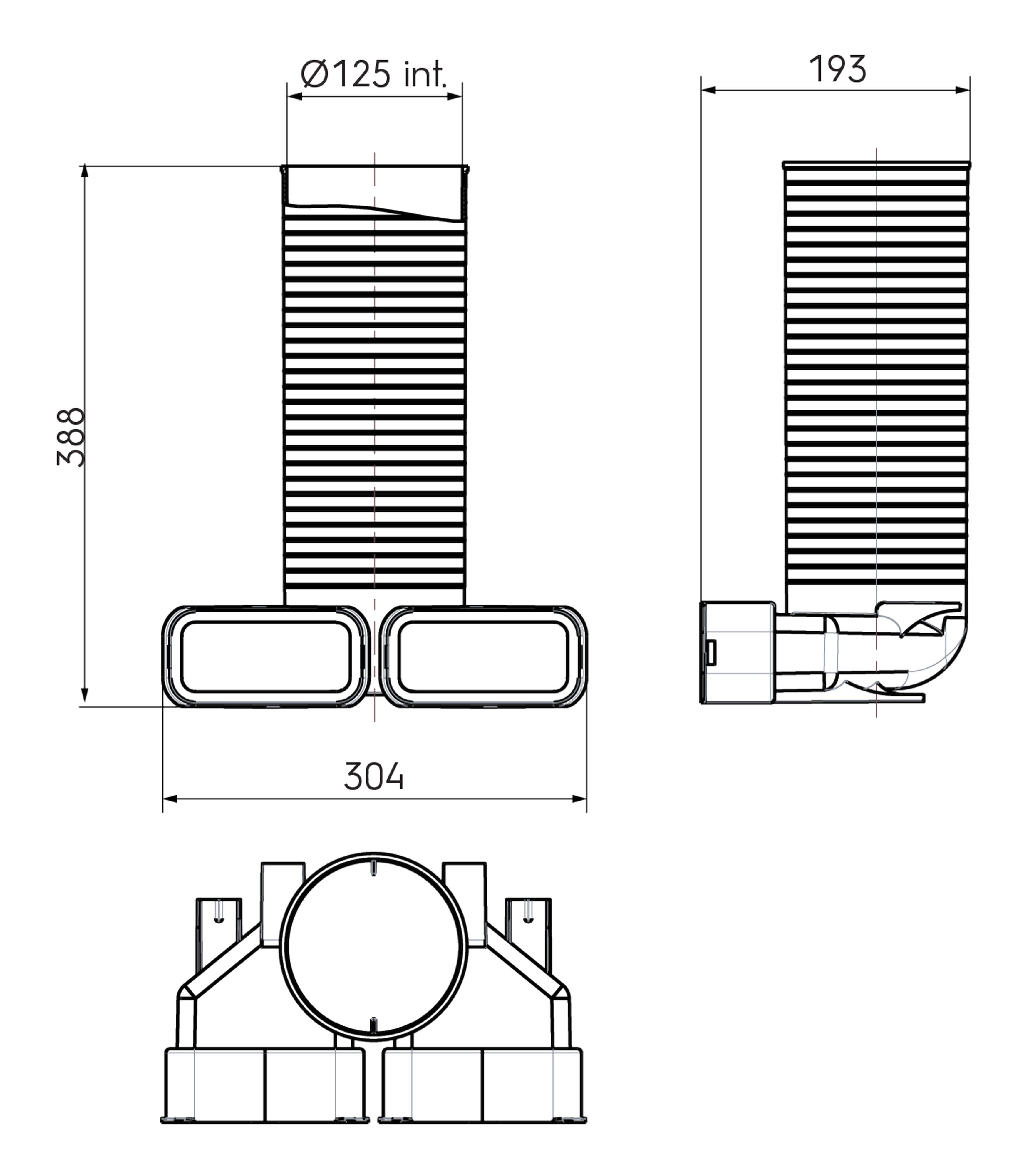 Raccordement 90° Air Excellent AE55SC pour bouche diamètre 125 mm pour 1 à 2 flexibles AE55SC semi-circulaires.