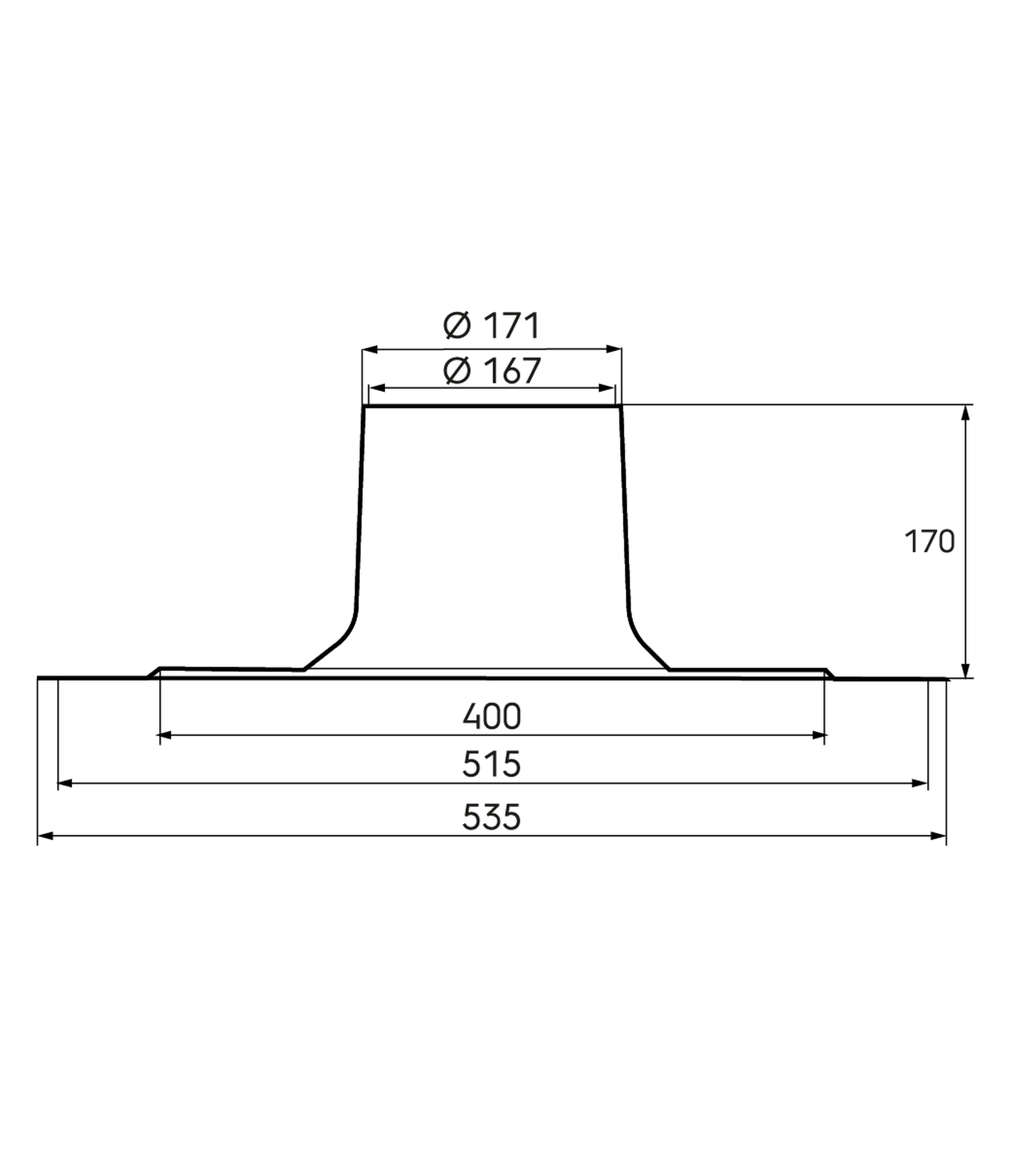 Matériaux : Aluminium, aluminium/EPDM ou aluminium/PVC Dimensions : d. 166-180 (solin aluminium seul), d. 131-166(solin avec jupe EPDM), d. 131-166 (solin avec jupe PVC)