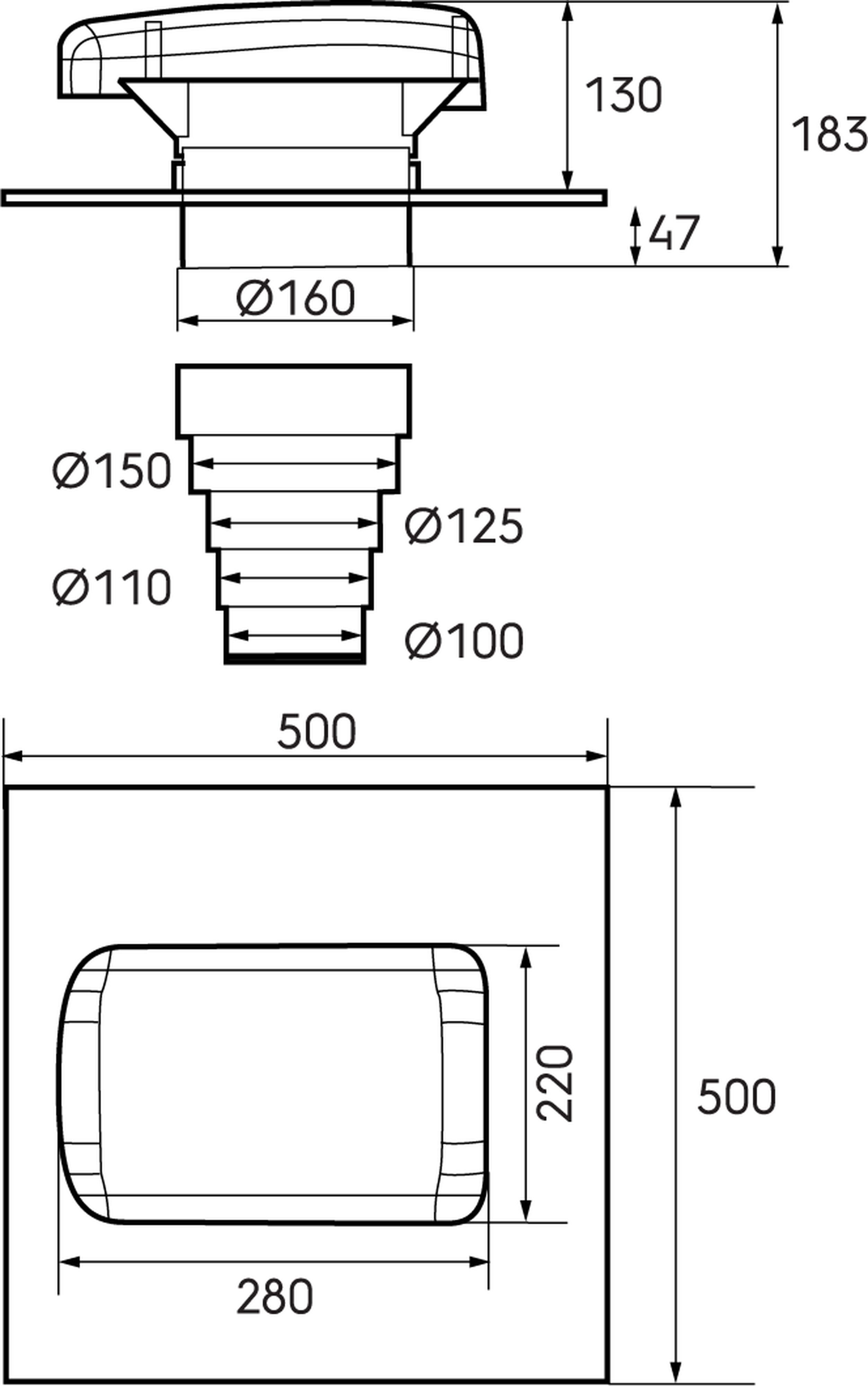 largeur du collier de toit - 500 mm