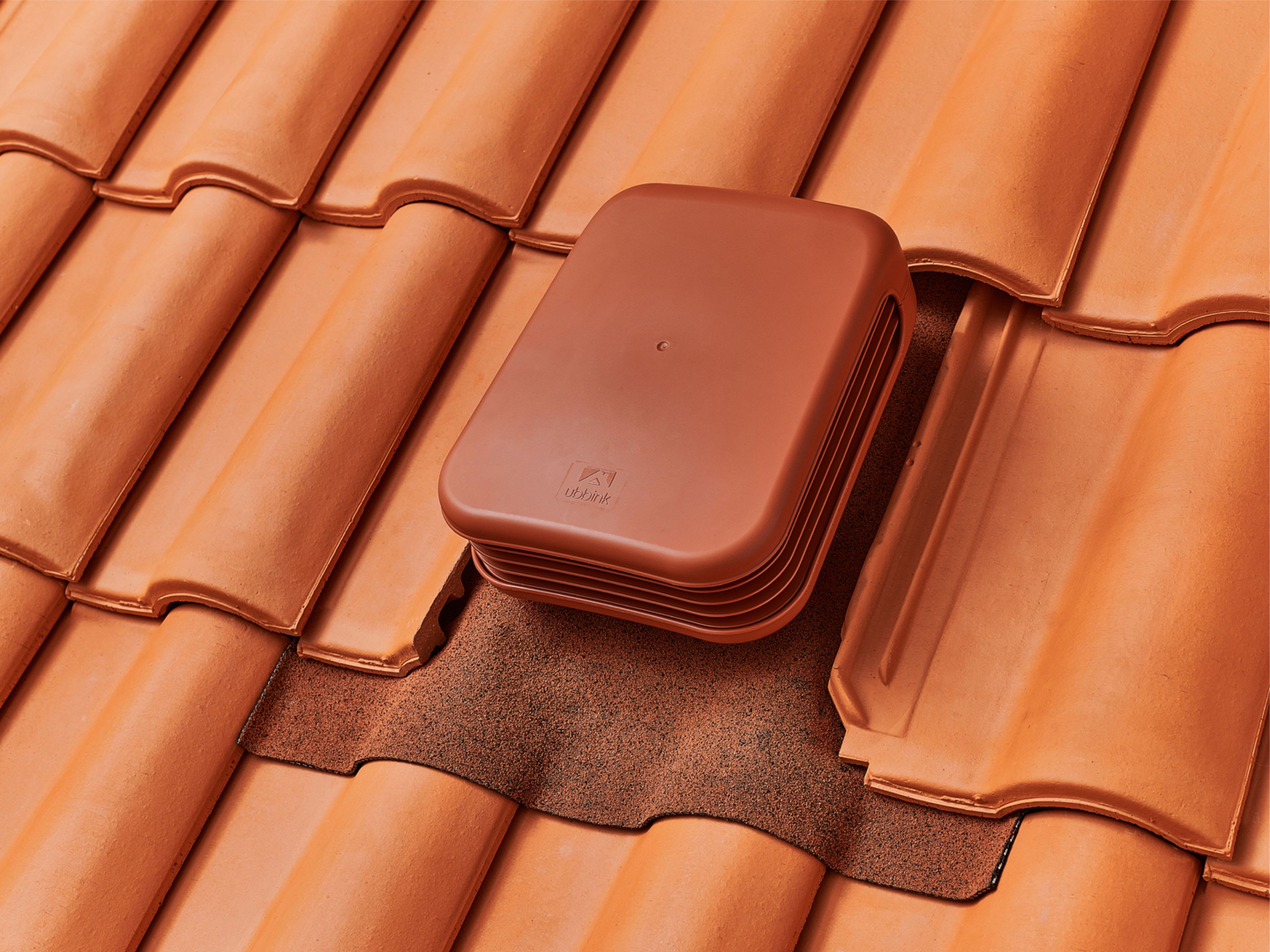 Solin d'étanchéité Ubiflex® (500 x 600 mm) permettant de s'adapter à de nombreuses tuiles Avec adaptateur multi-diamètre Très faibles pertes de charge (testé auprès du laboratoire CETIAT) Conforme DTU 68.3 et CPT 3828 Compatible RE 2020