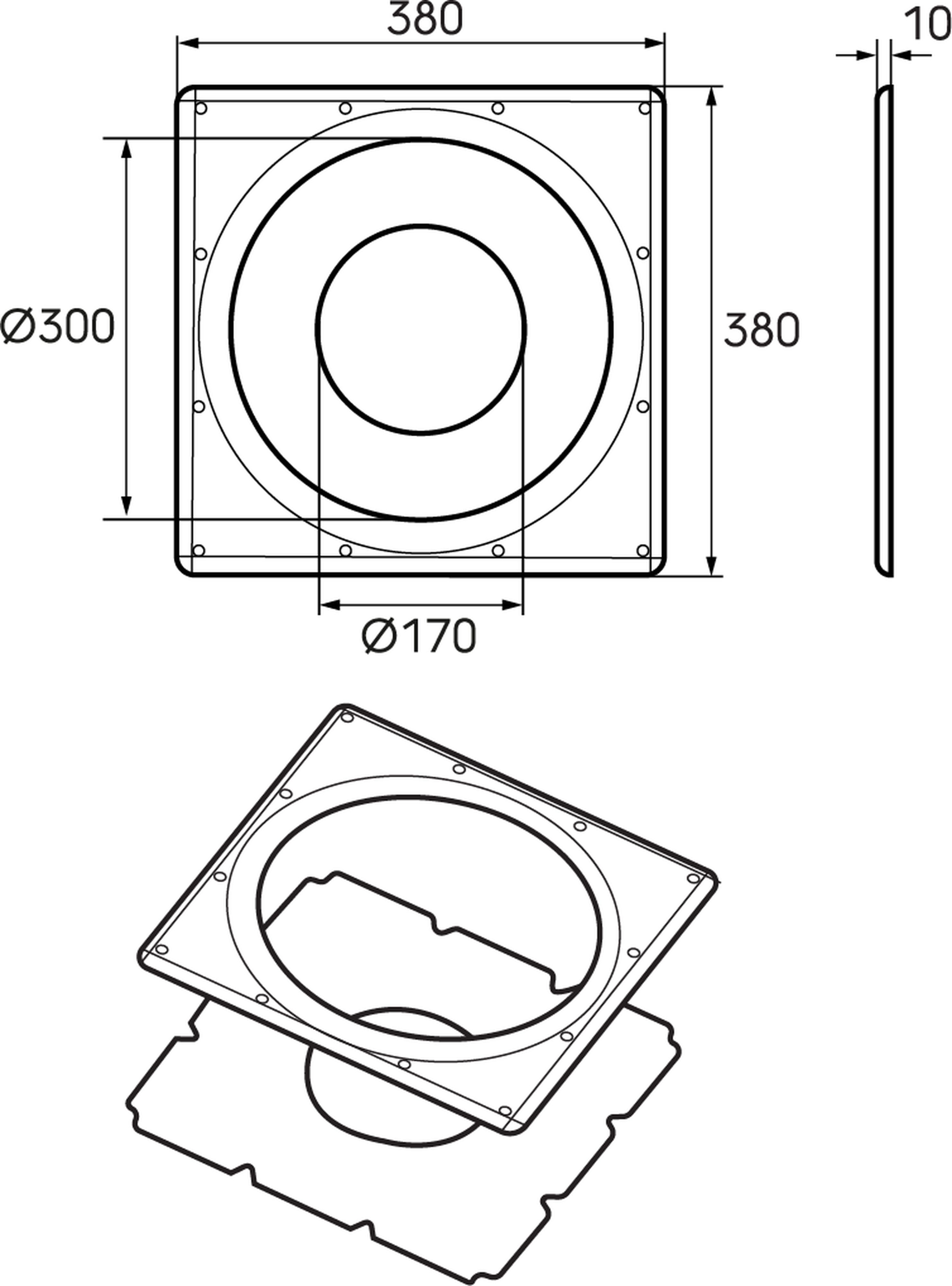 • hauteur d'encastrement - 10 mm