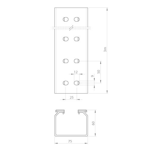 Unex - Chemin de câbles fond perforé gris RAL7035 60x75 U23X - 66090