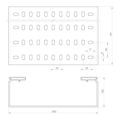 Unex - Chemin de câbles fond perforé gris RAL7038 100x300 U48X sans halogènes - 66320-48