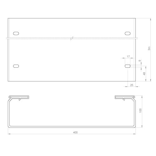 Unex - Chemin de câbles fond plein gris RAL7035 100x400 U23X - 66421