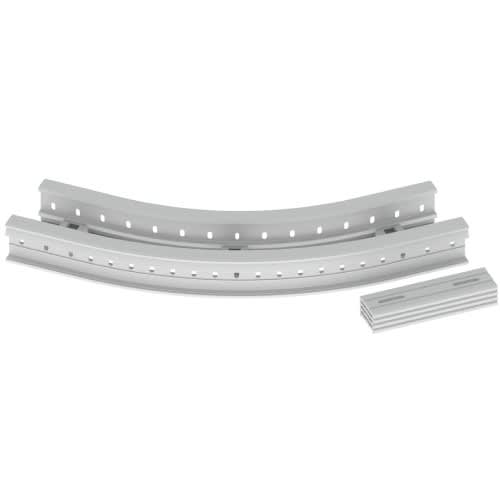 Coude plat 45° 85x200 R600 gris RAL7035 U23X. Pour réaliser un changement de direction à 45° de l'échelle à câbles 67 85x200 mm avec un rayon de courbure de 600 mm - Livré avec 4 pièces de jonction.