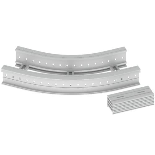 Coude plat 45° 135x300 R600 gris RAL7035 U23X. Pour réaliser un changement de direction à 45° de l'échelle à câbles 67 135x300 mm avec un rayon de courbure de 600 mm - Livré avec 4 pièces de jonction.