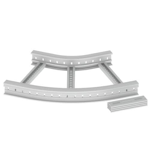 Coude plat 45° 85x500 R300 gris RAL7035 U23X. Pour réaliser un changement de direction à 45° de l'échelle à câbles 67 85x500 mm avec un rayon de courbure de 300 mm - Livré avec 4 pièces de jonction.